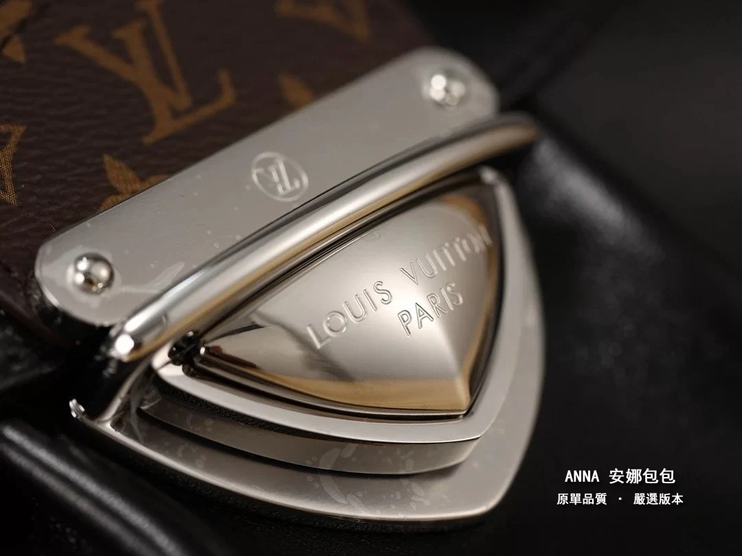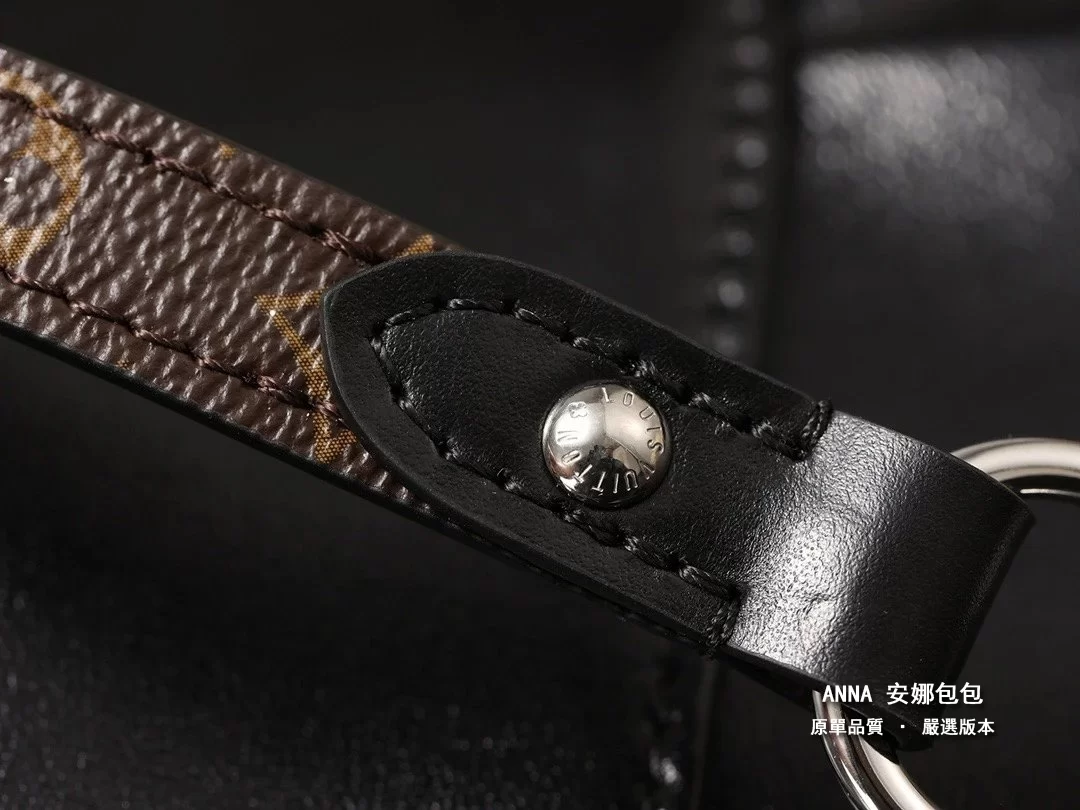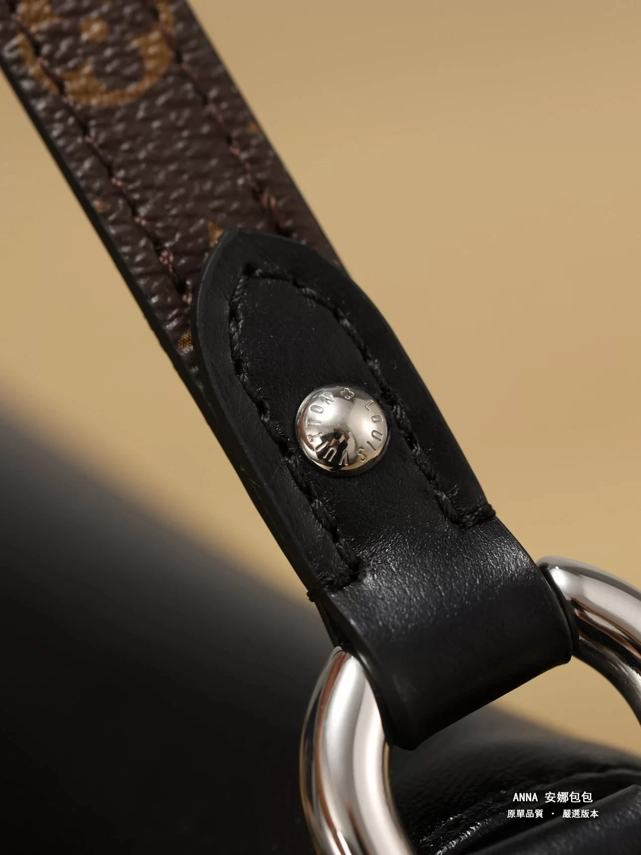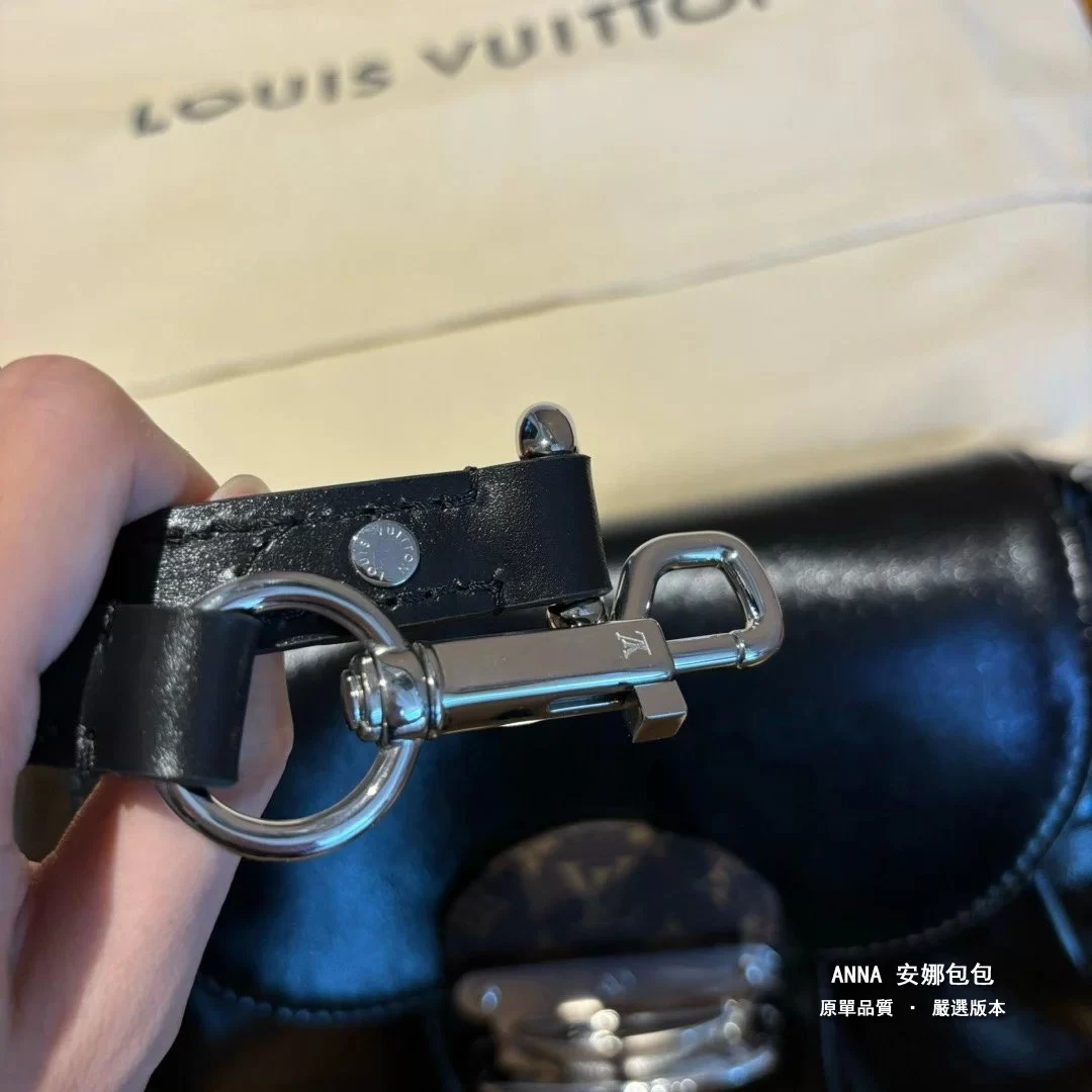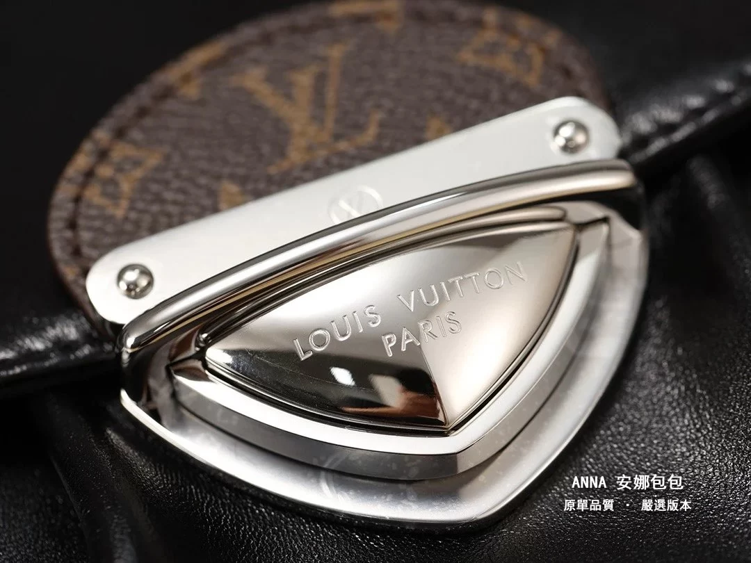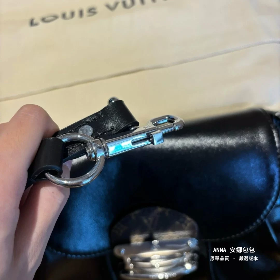 瑩澤羊皮革、Monogram 帆布元素和 LV 插扣共同彰顯復古風尚,口袋設計方便收納隨行所需。