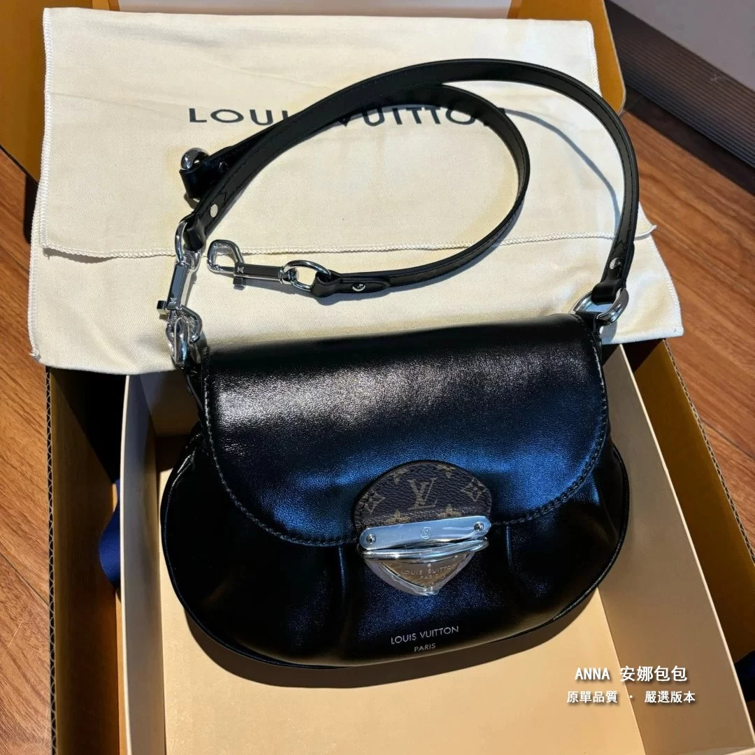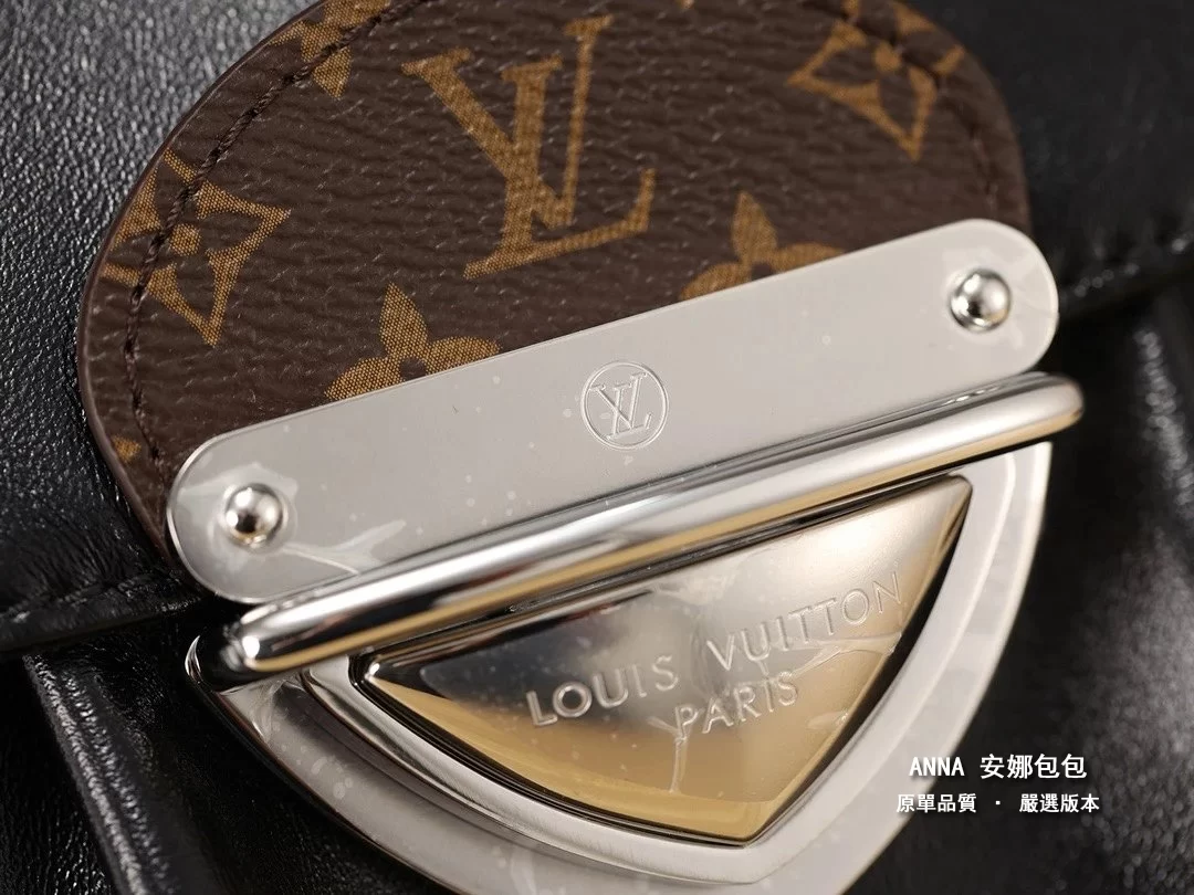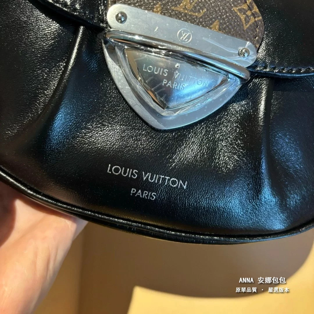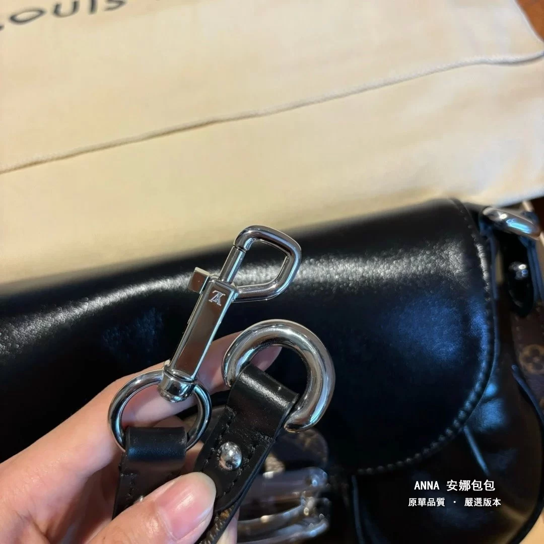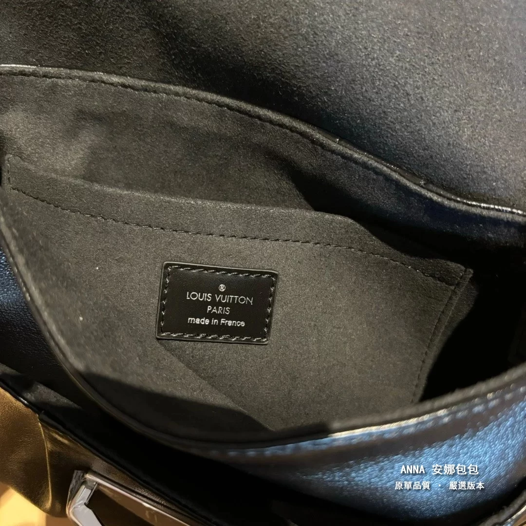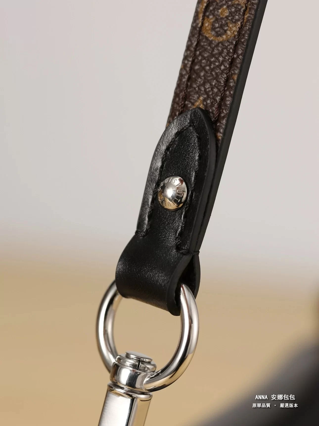 瑩澤羊皮革、Monogram 帆布元素和 LV 插扣共同彰顯復古風尚,口袋設計方便收納隨行所需。