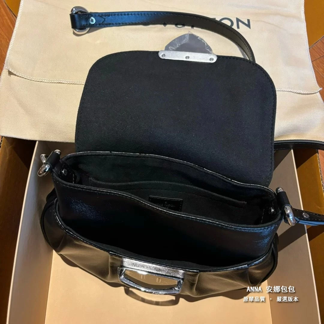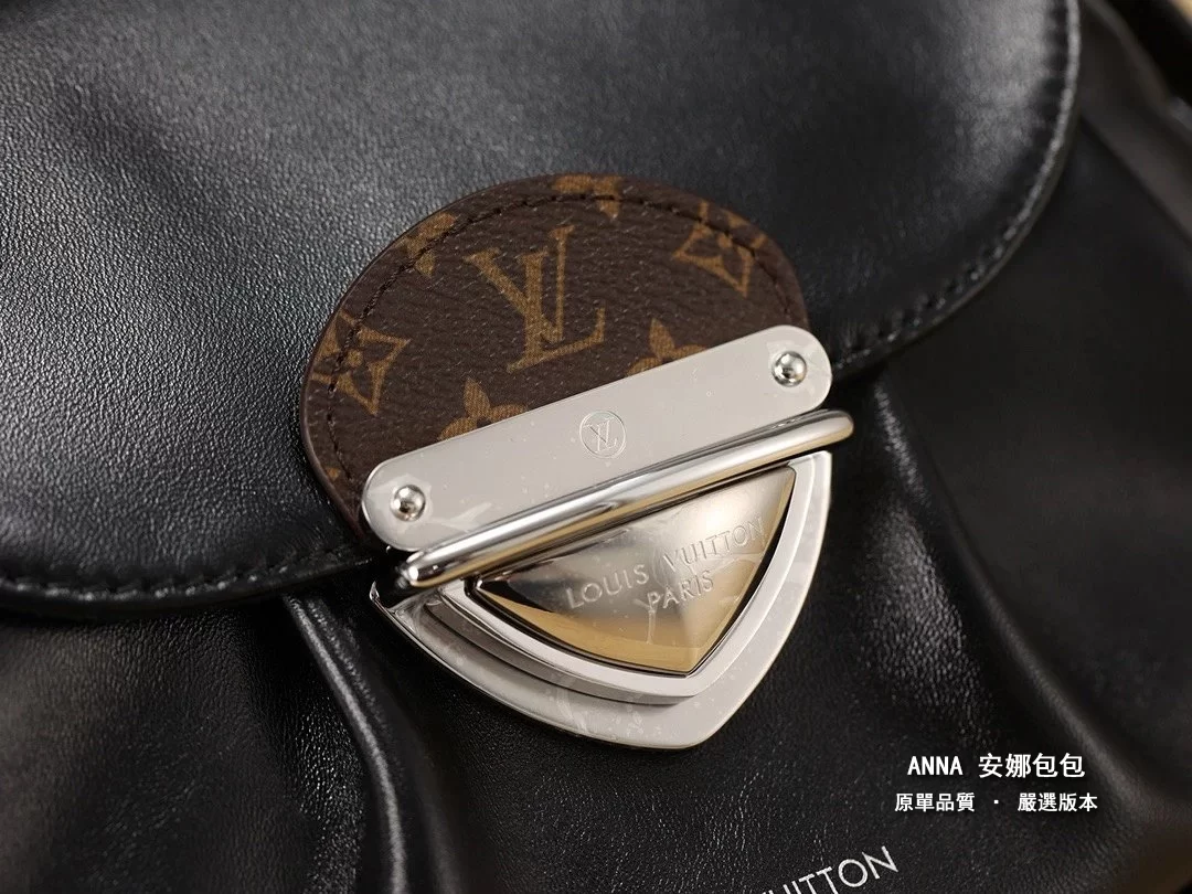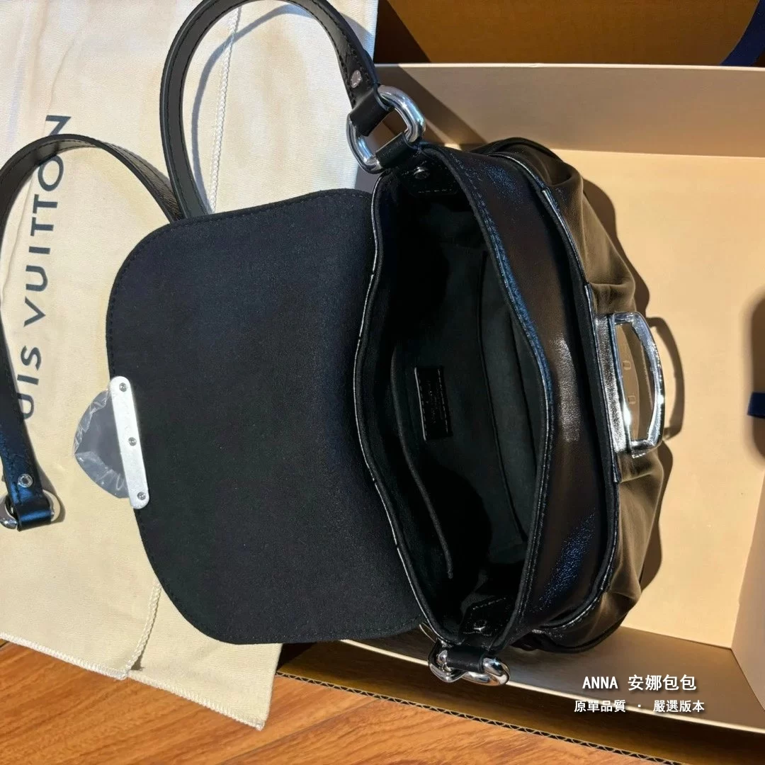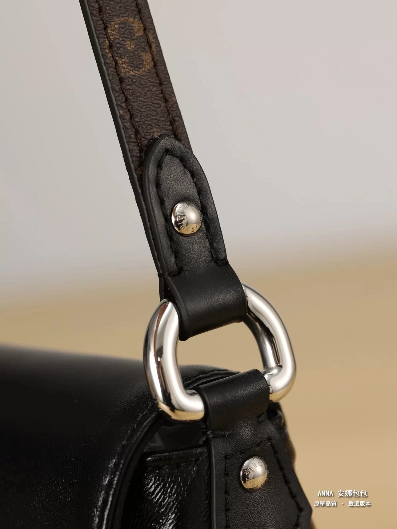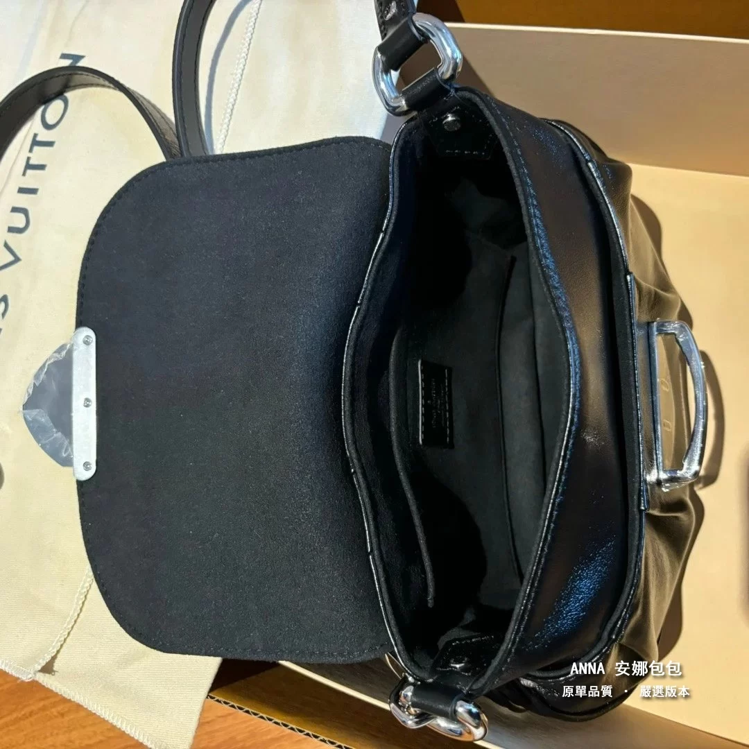 瑩澤羊皮革、Monogram 帆布元素和 LV 插扣共同彰顯復古風尚,口袋設計方便收納隨行所需。