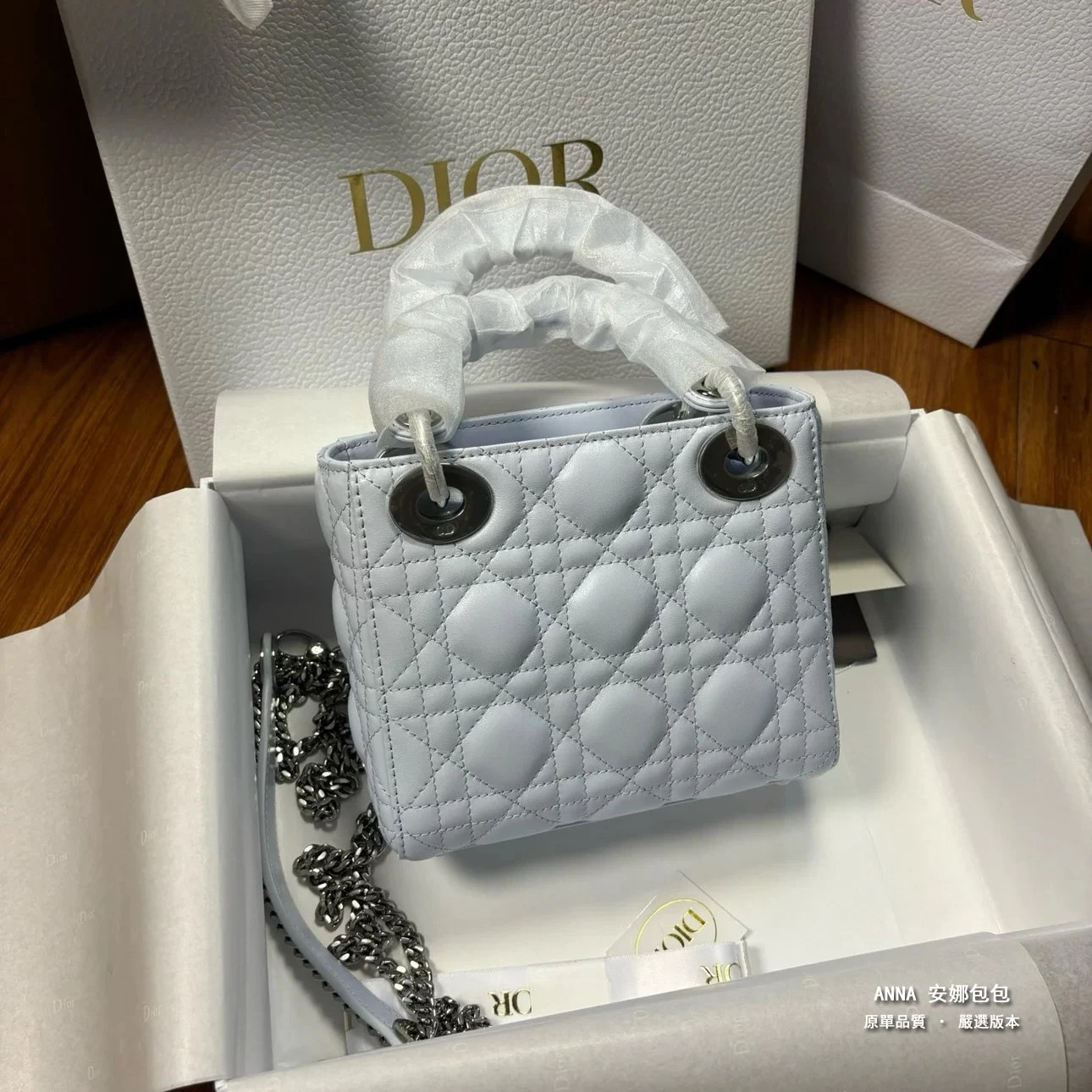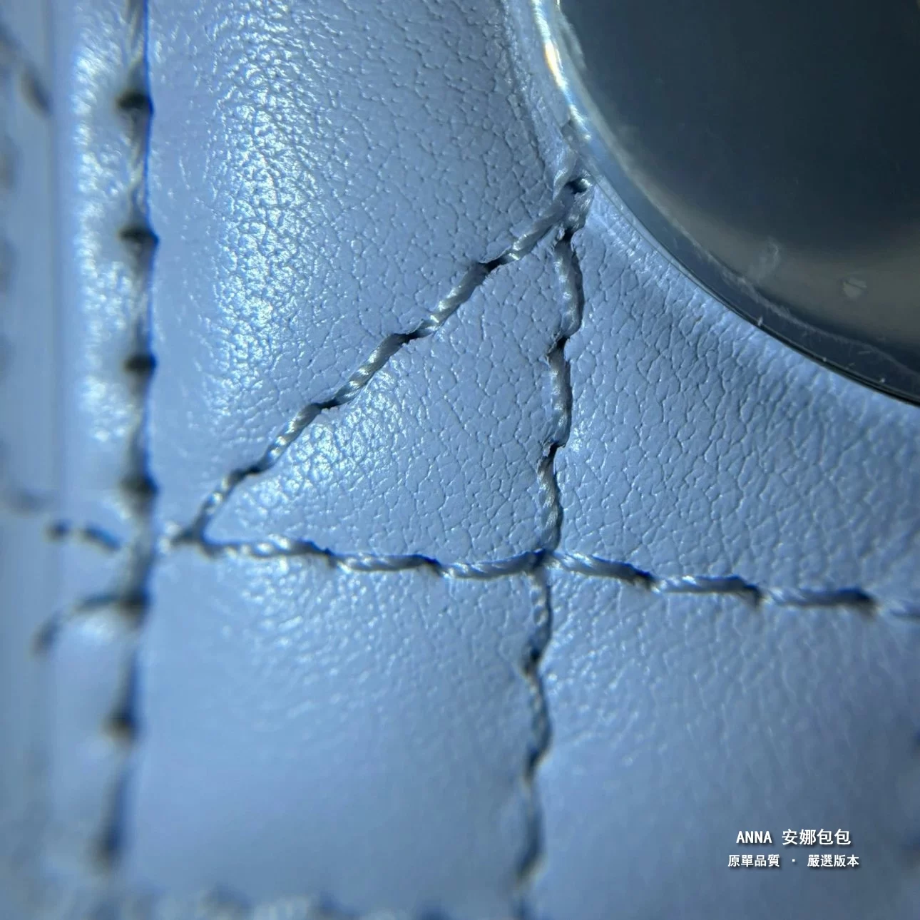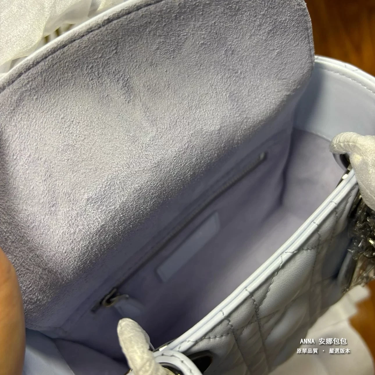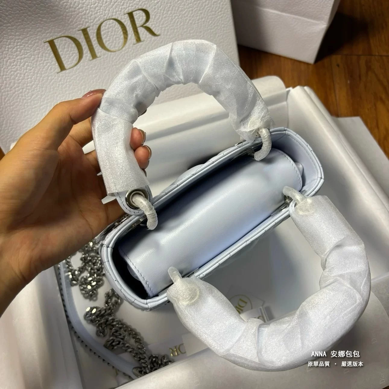 迪奧 藤格紋迷你手提包|冰川藍羊皮・銀色吊飾・可拆鏈條|頂級版本