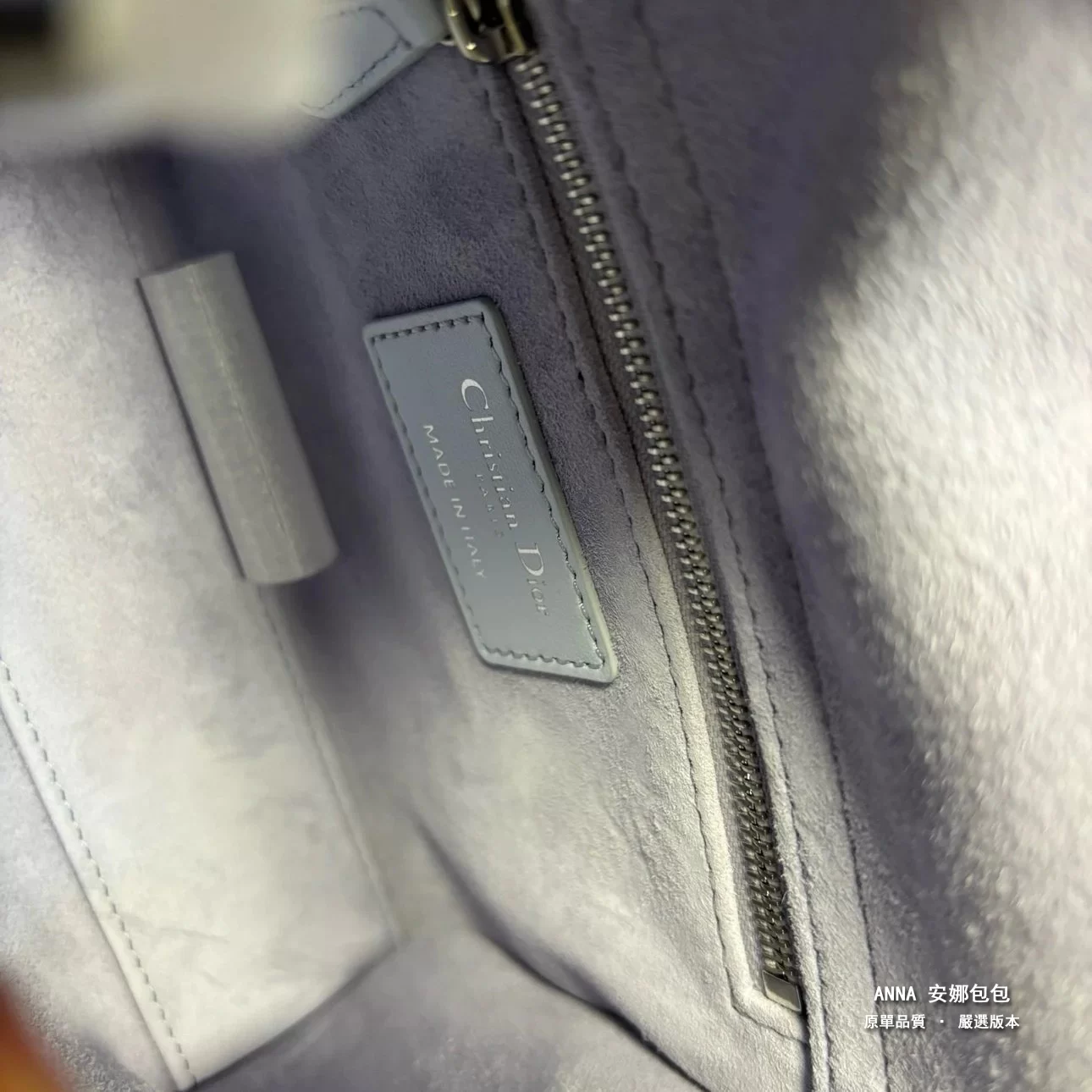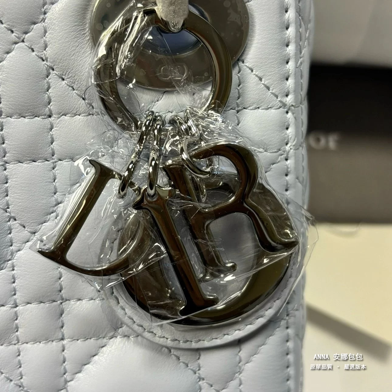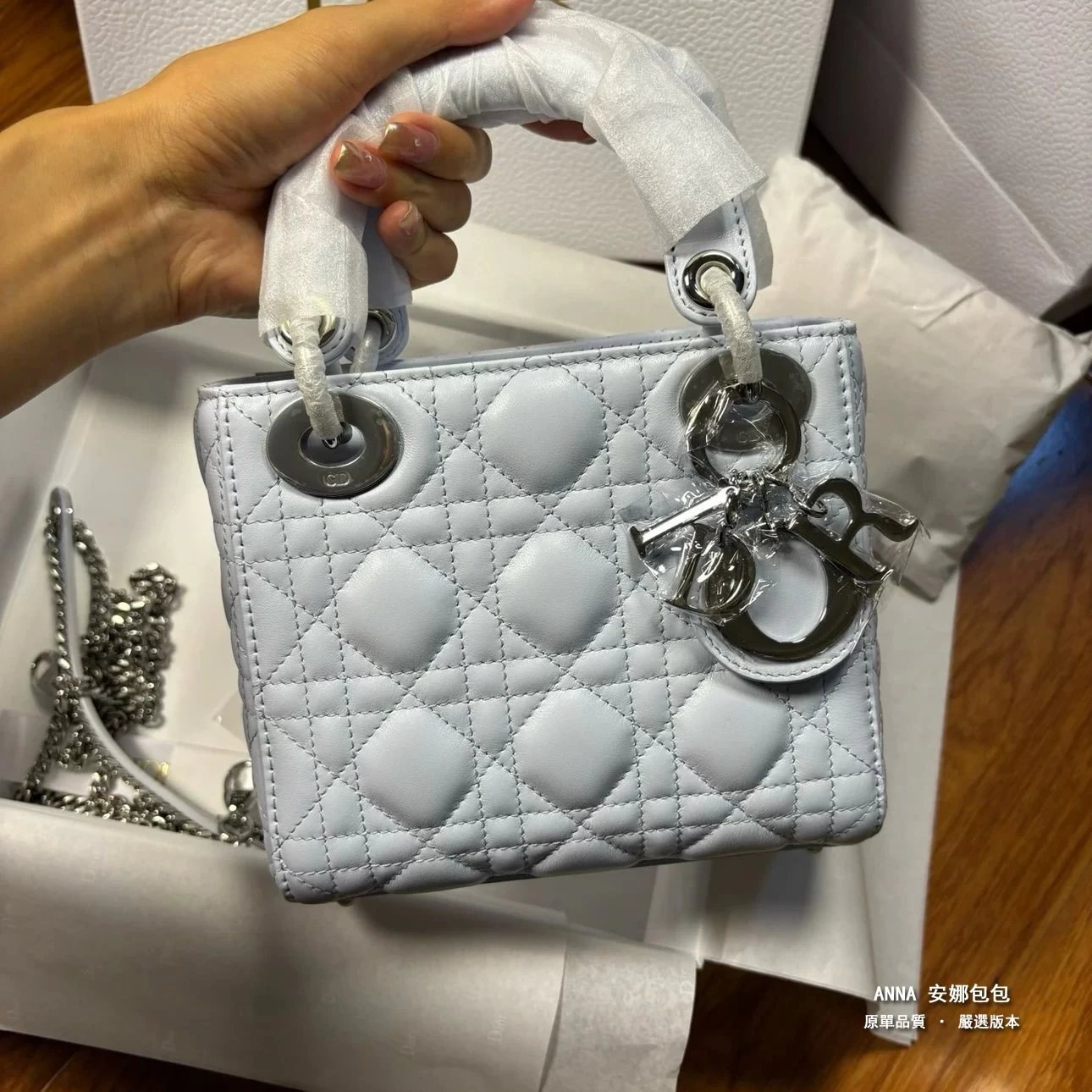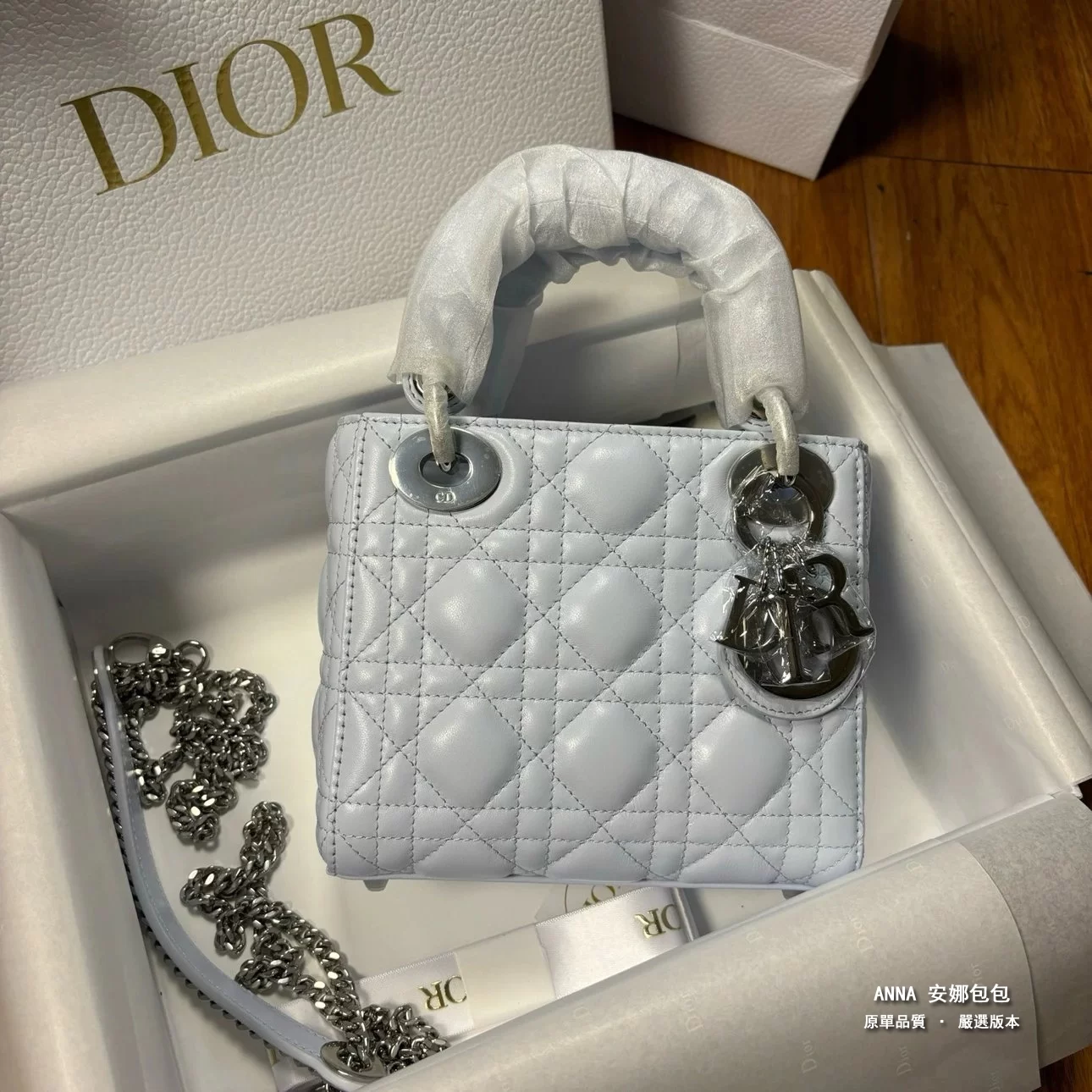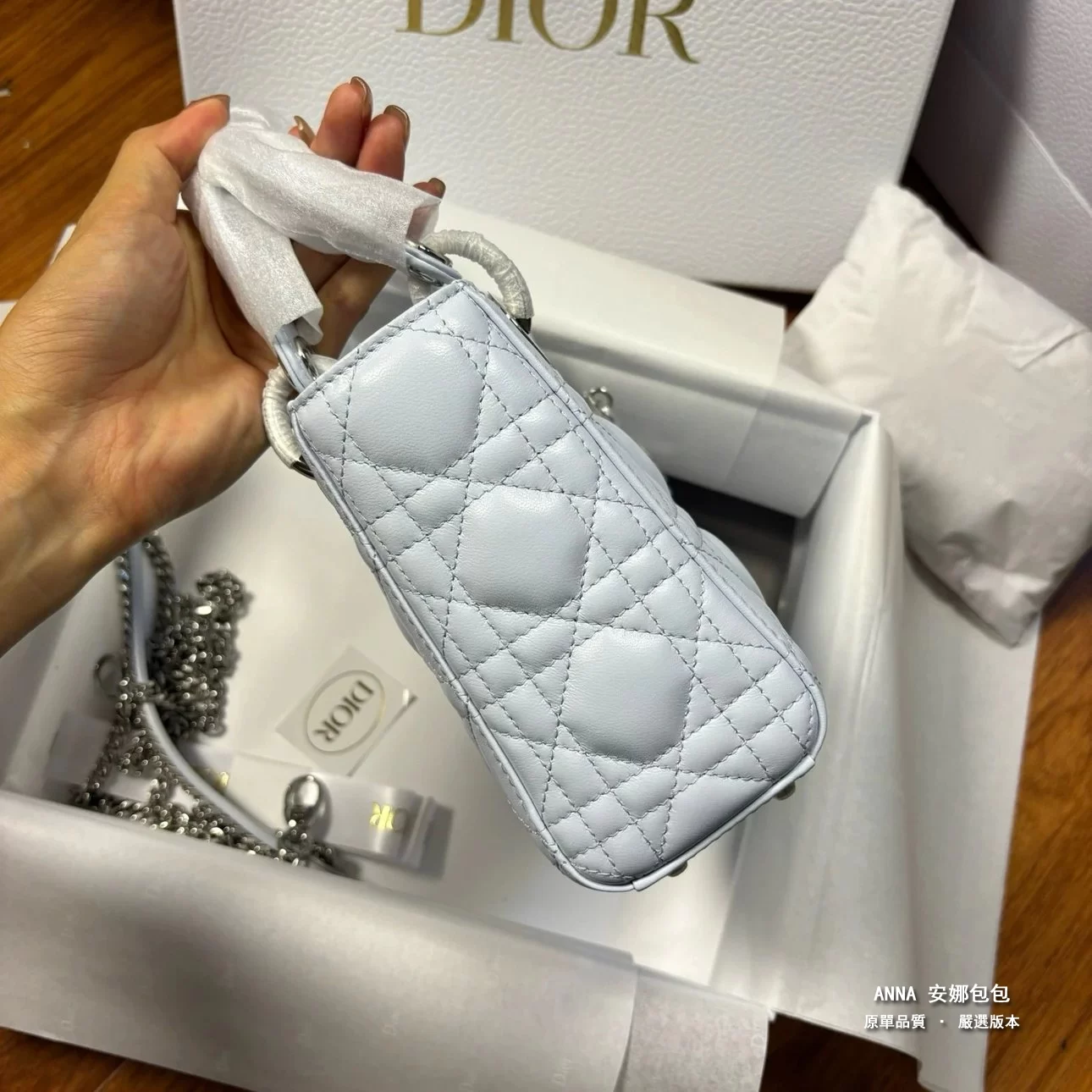 迪奧 藤格紋迷你手提包|冰川藍羊皮・銀色吊飾・可拆鏈條|頂級版本