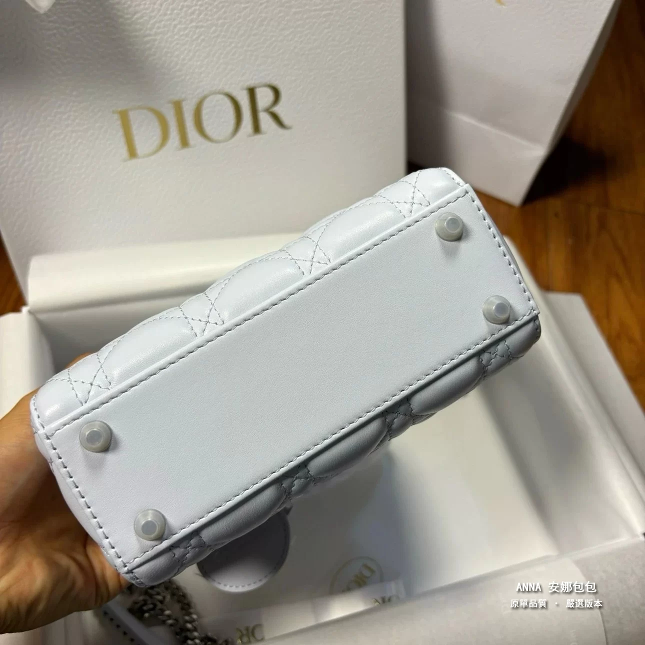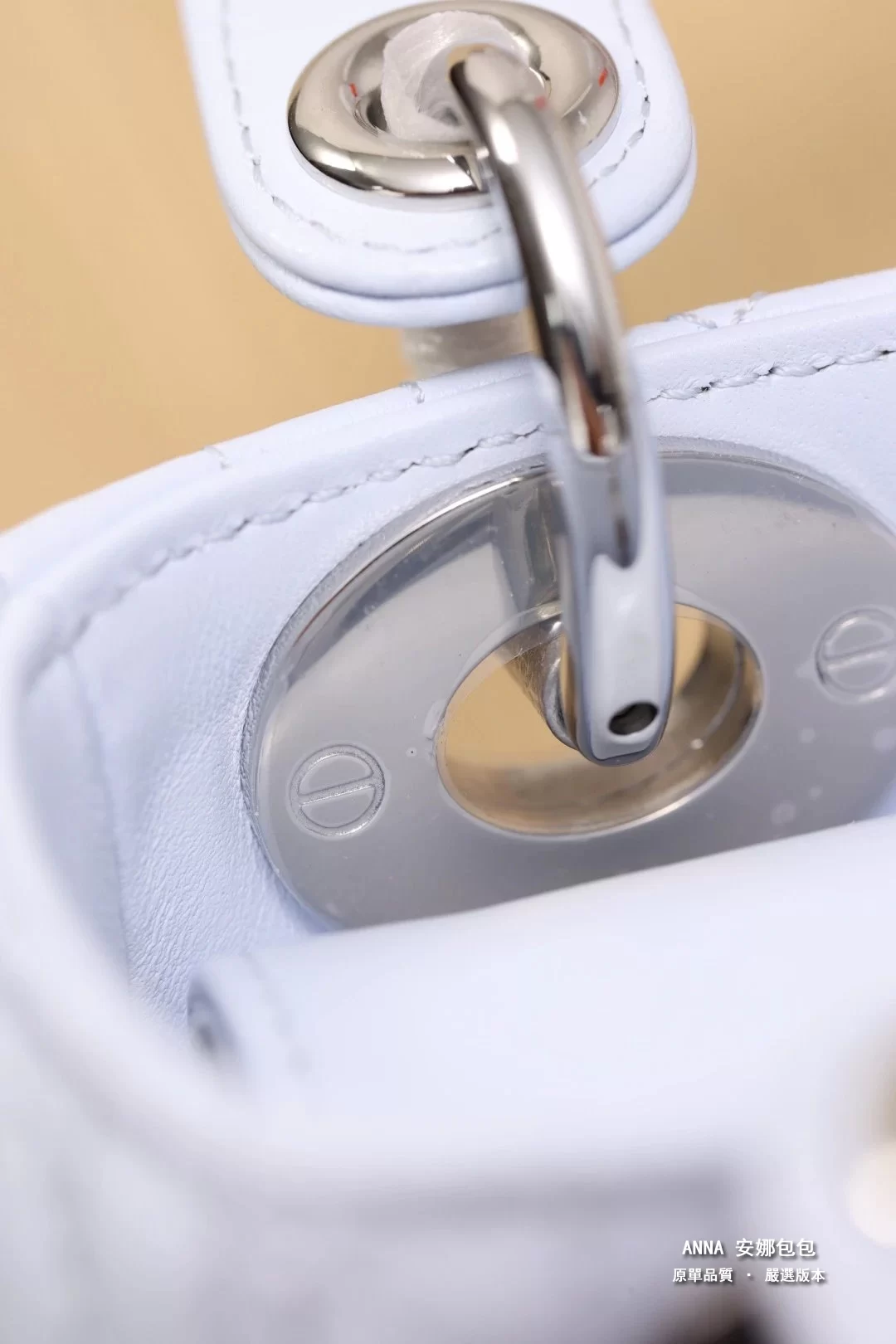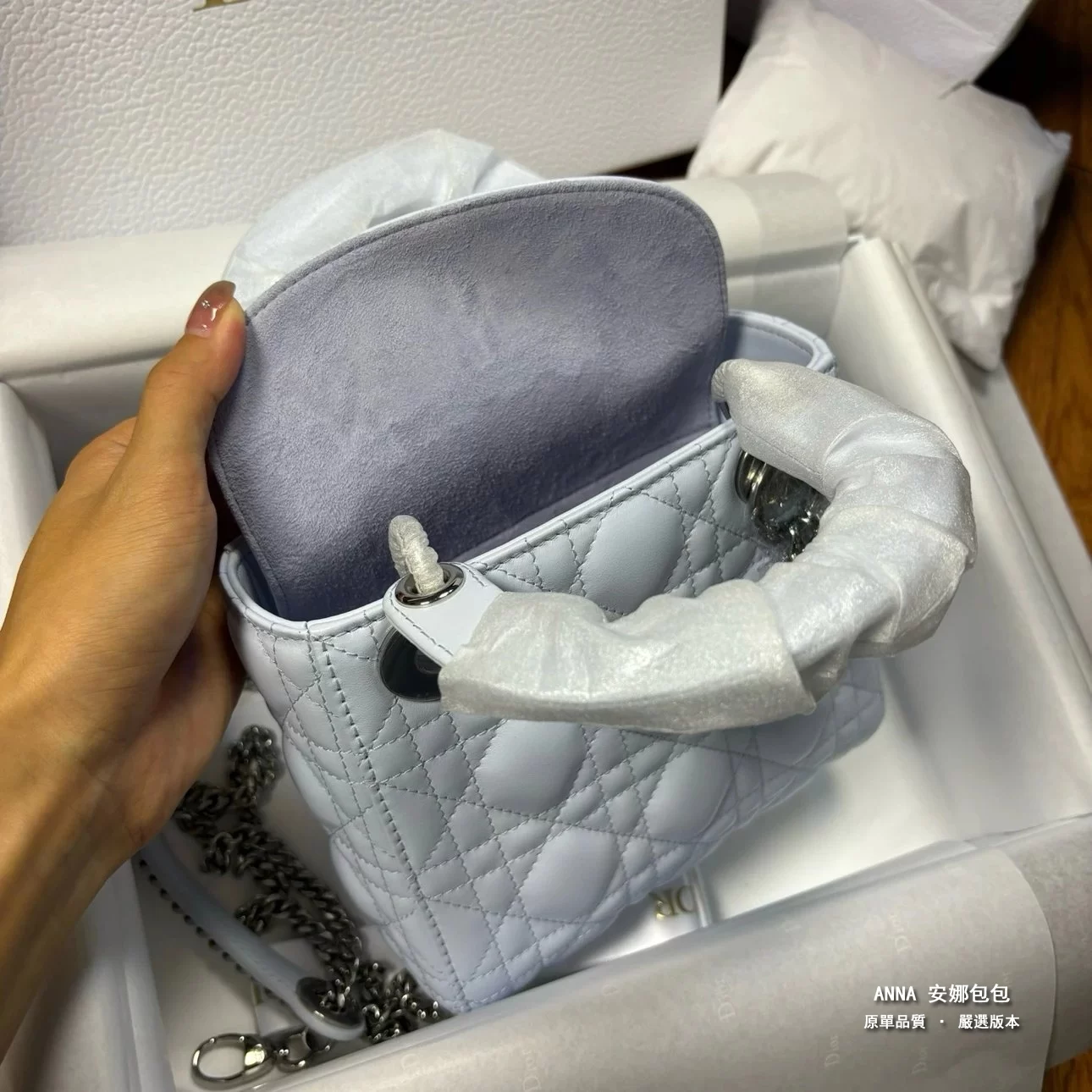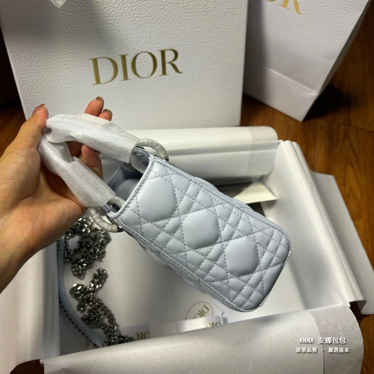 迪奧 藤格紋迷你手提包|冰川藍羊皮・銀色吊飾・可拆鏈條|頂級版本