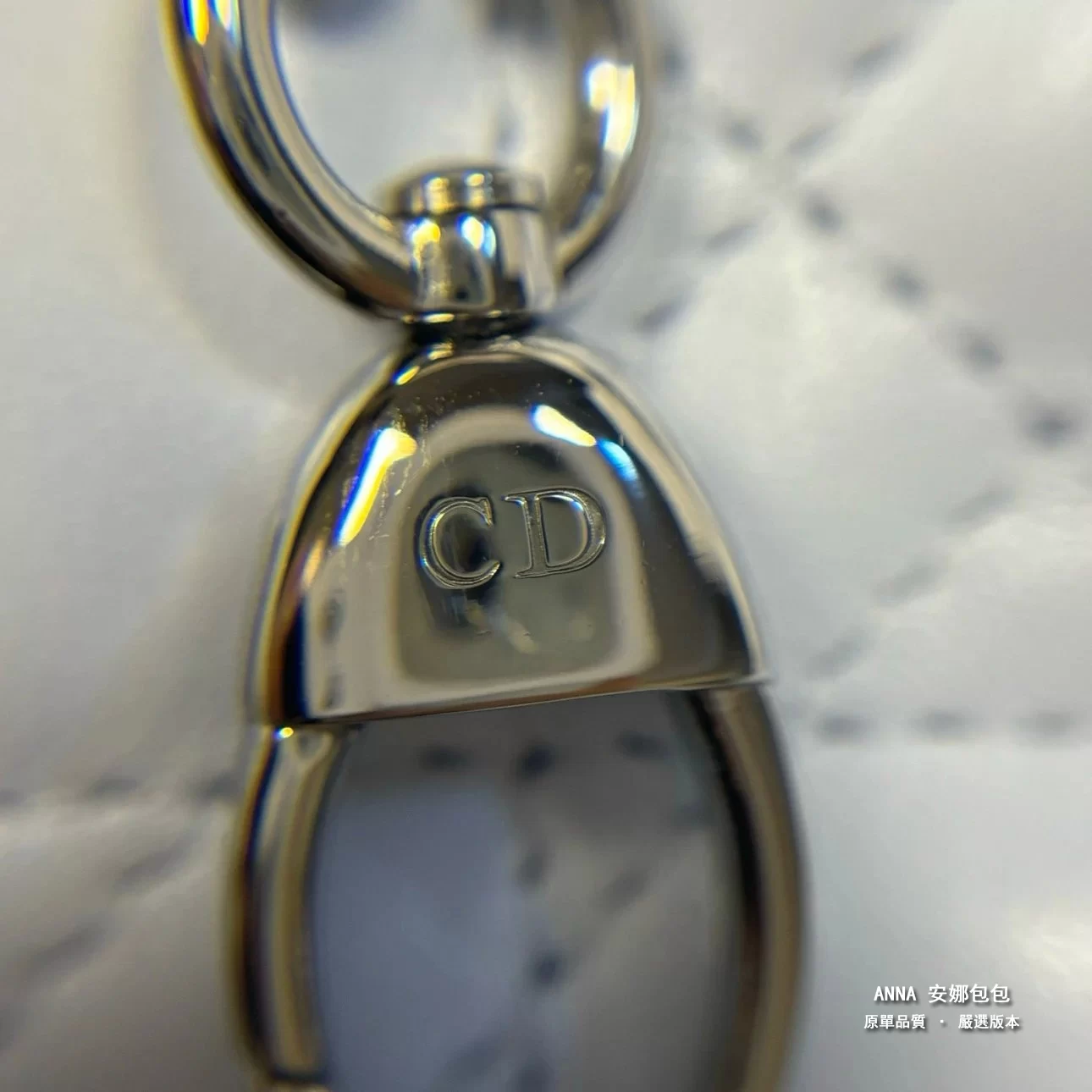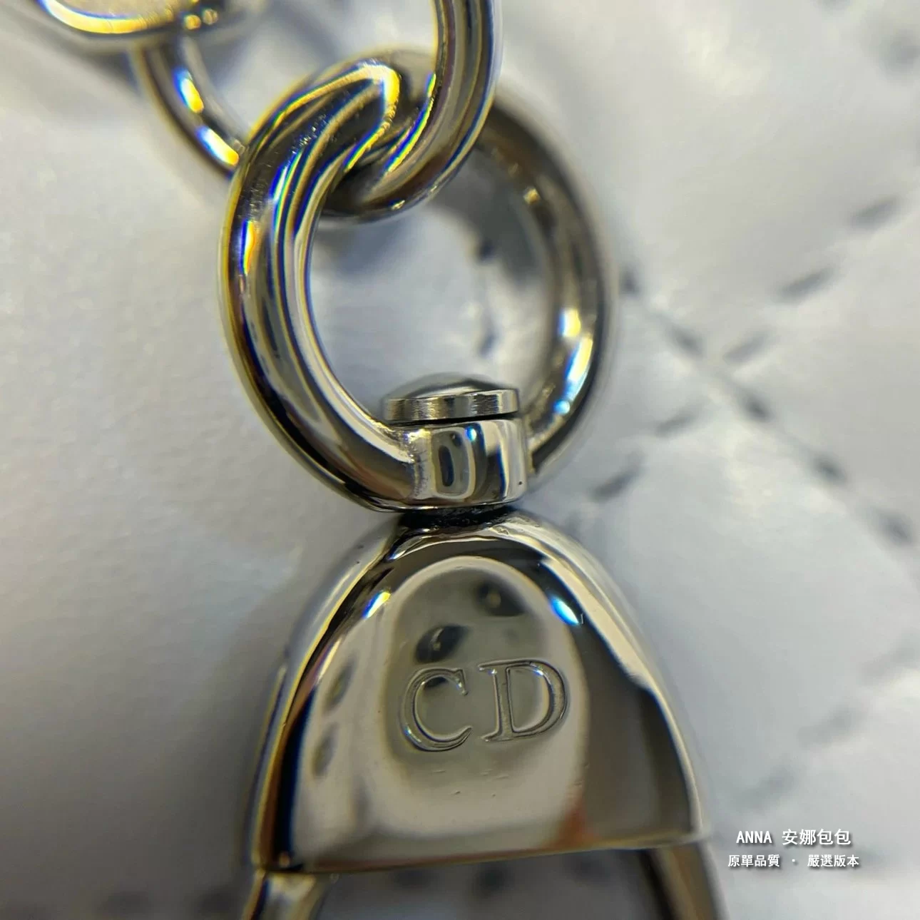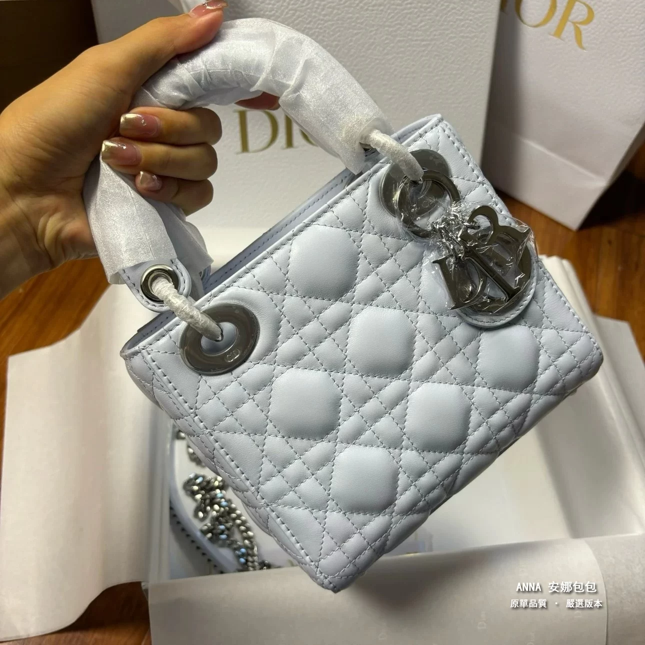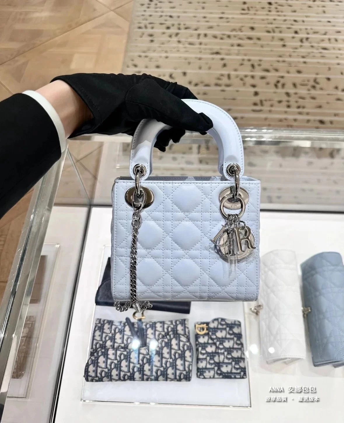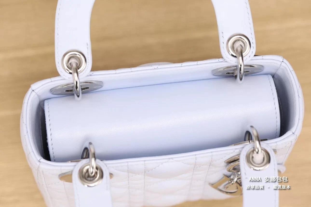 迪奧 藤格紋迷你手提包|冰川藍羊皮・銀色吊飾・可拆鏈條|頂級版本