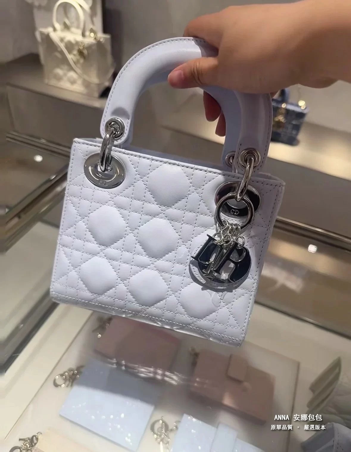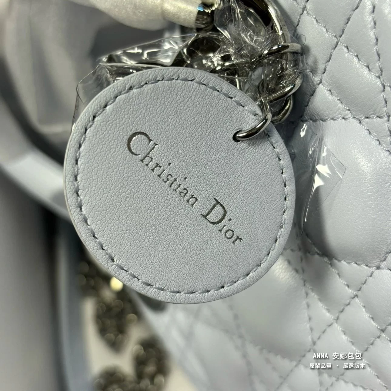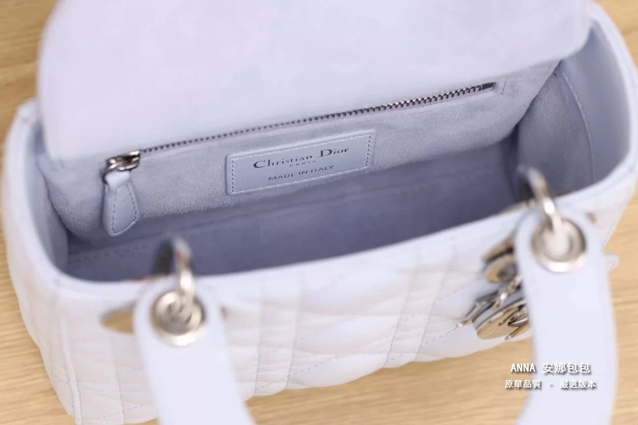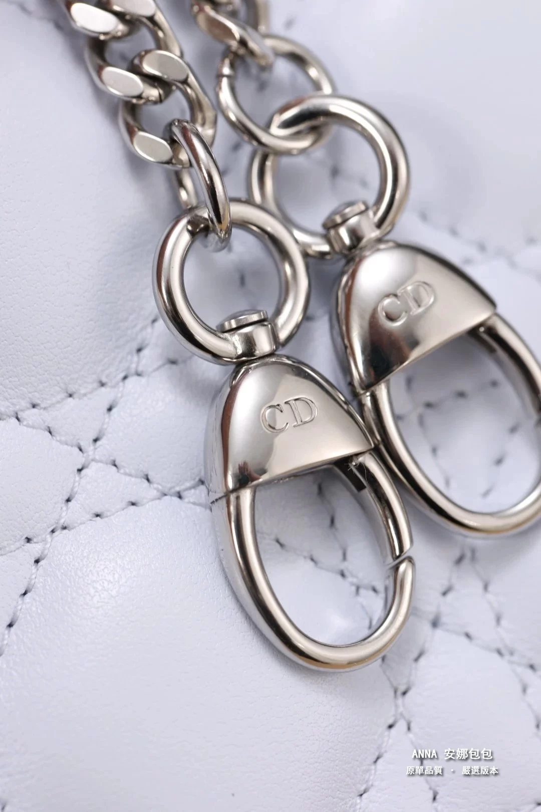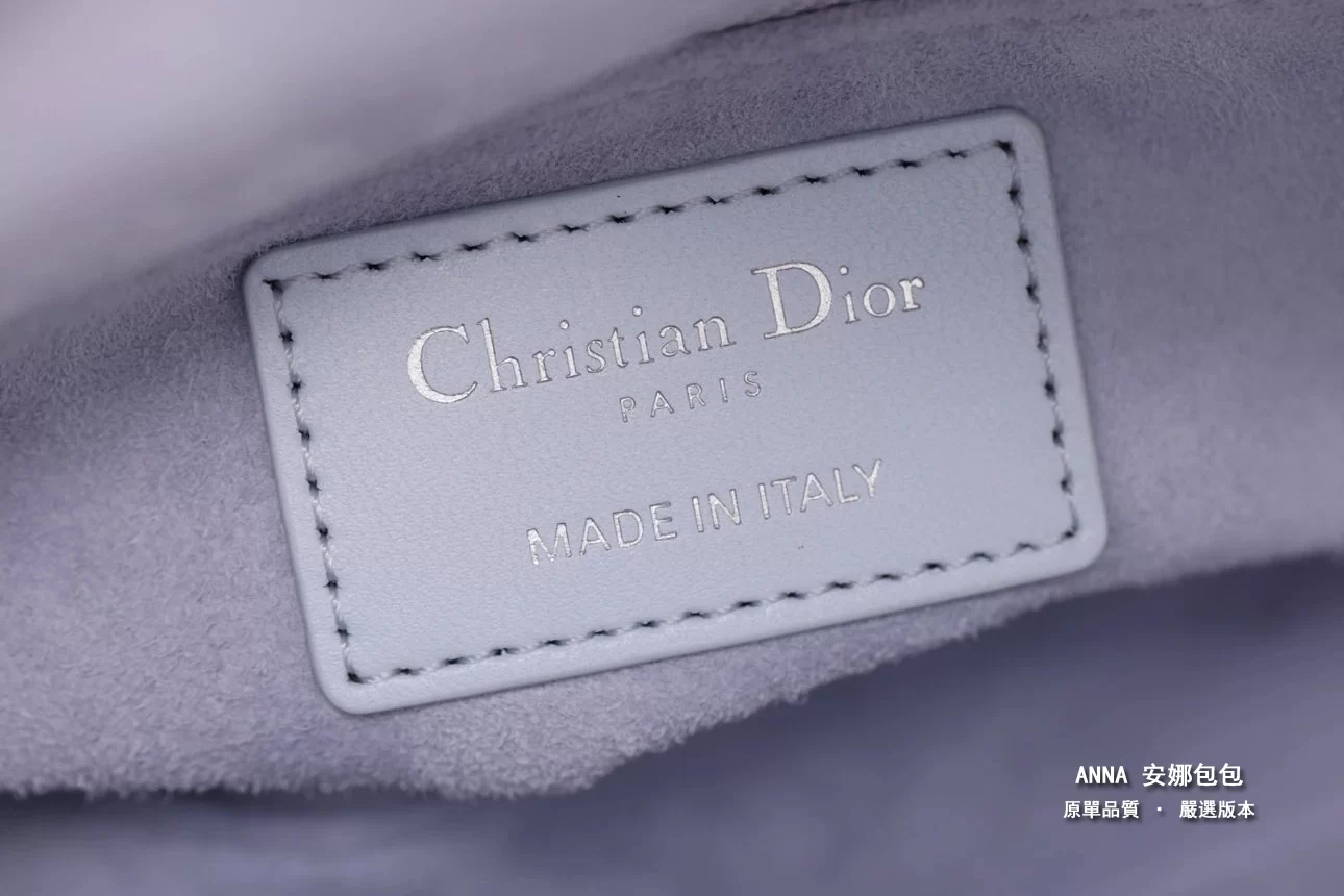 迪奧 藤格紋迷你手提包|冰川藍羊皮・銀色吊飾・可拆鏈條|頂級版本