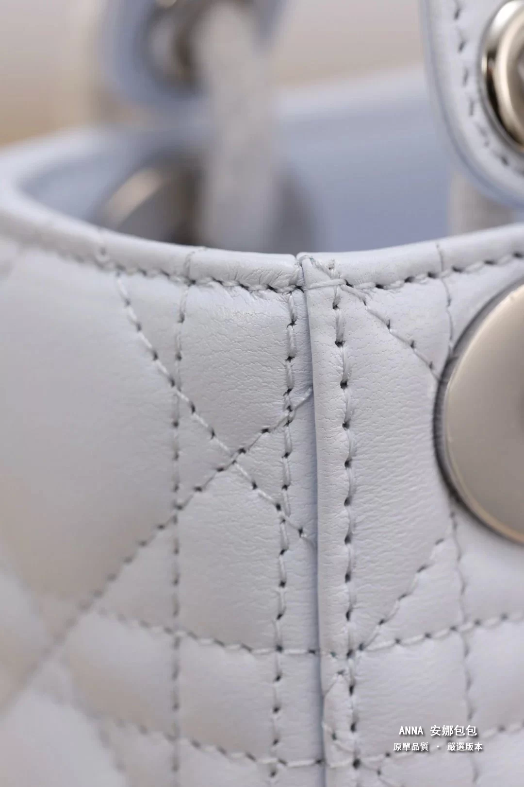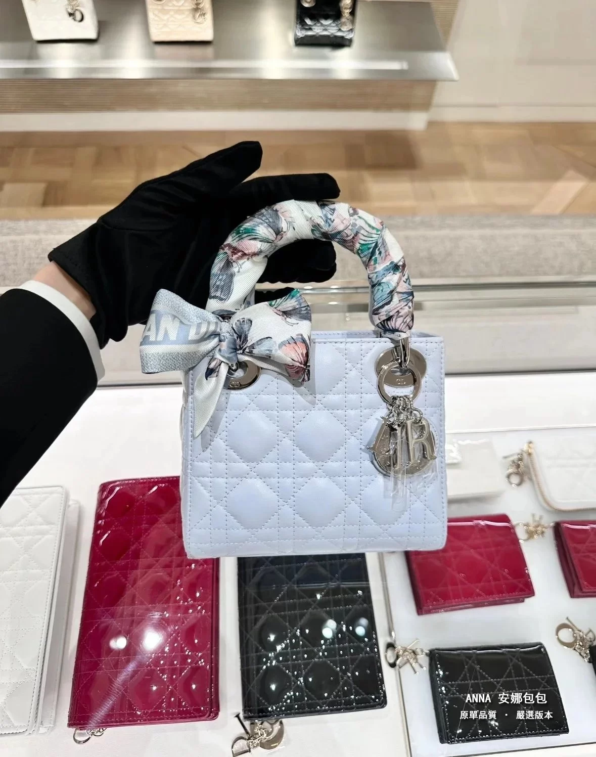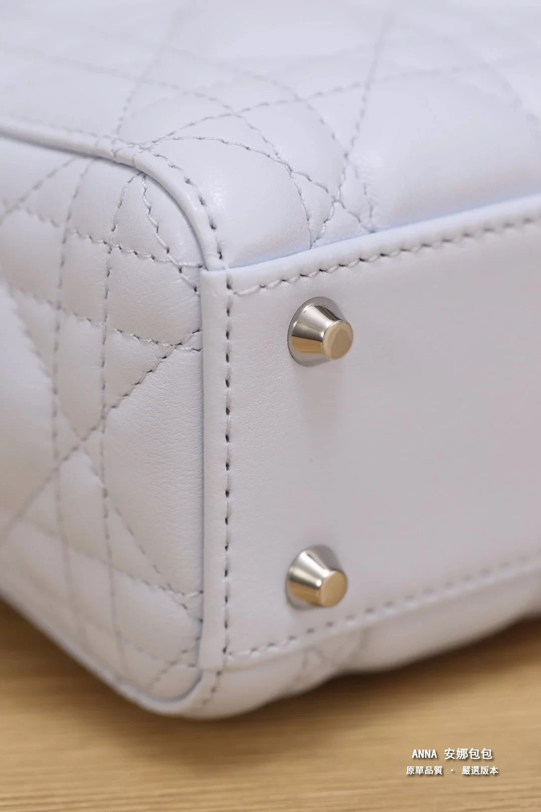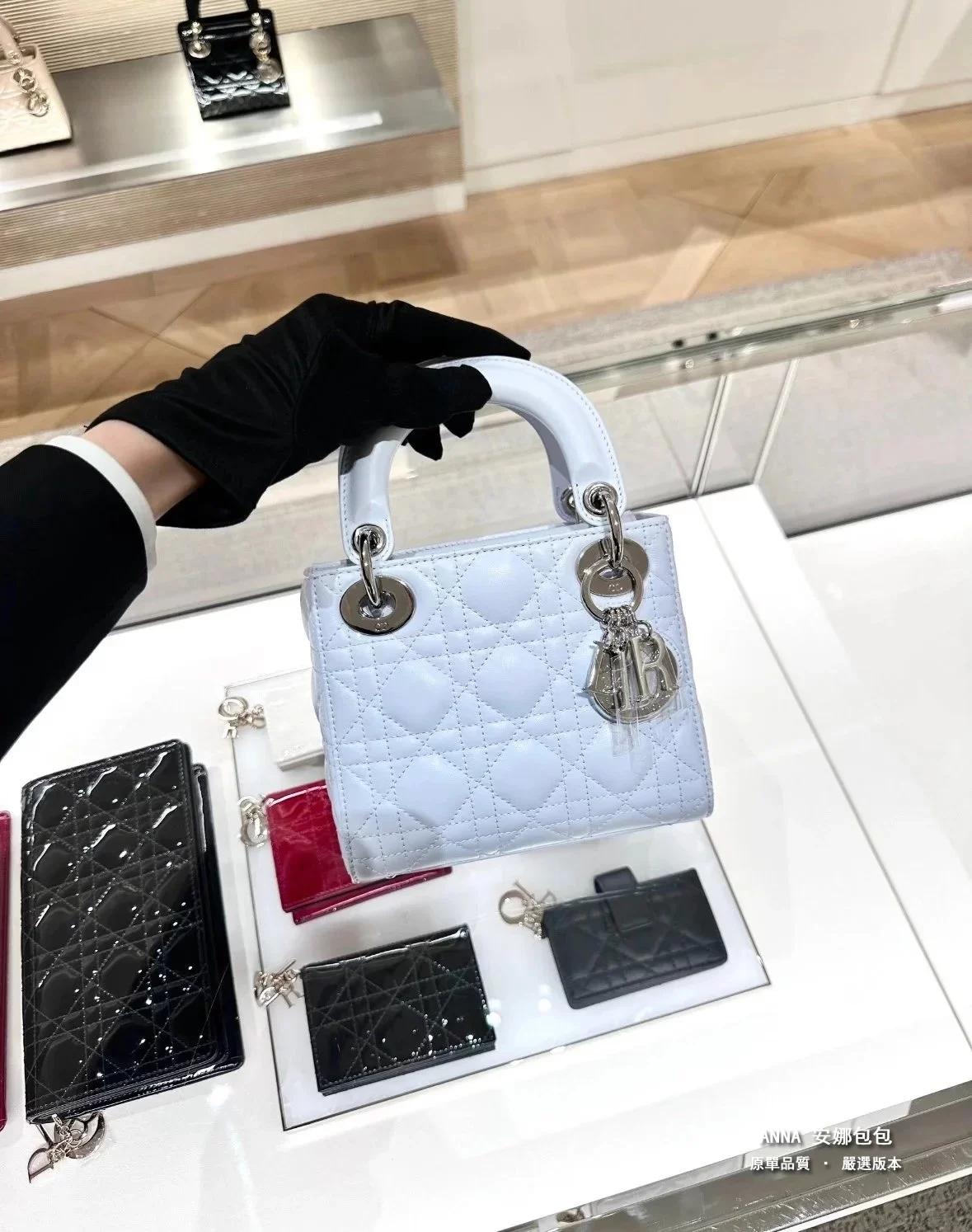 迪奧 藤格紋迷你手提包|冰川藍羊皮・銀色吊飾・可拆鏈條|頂級版本