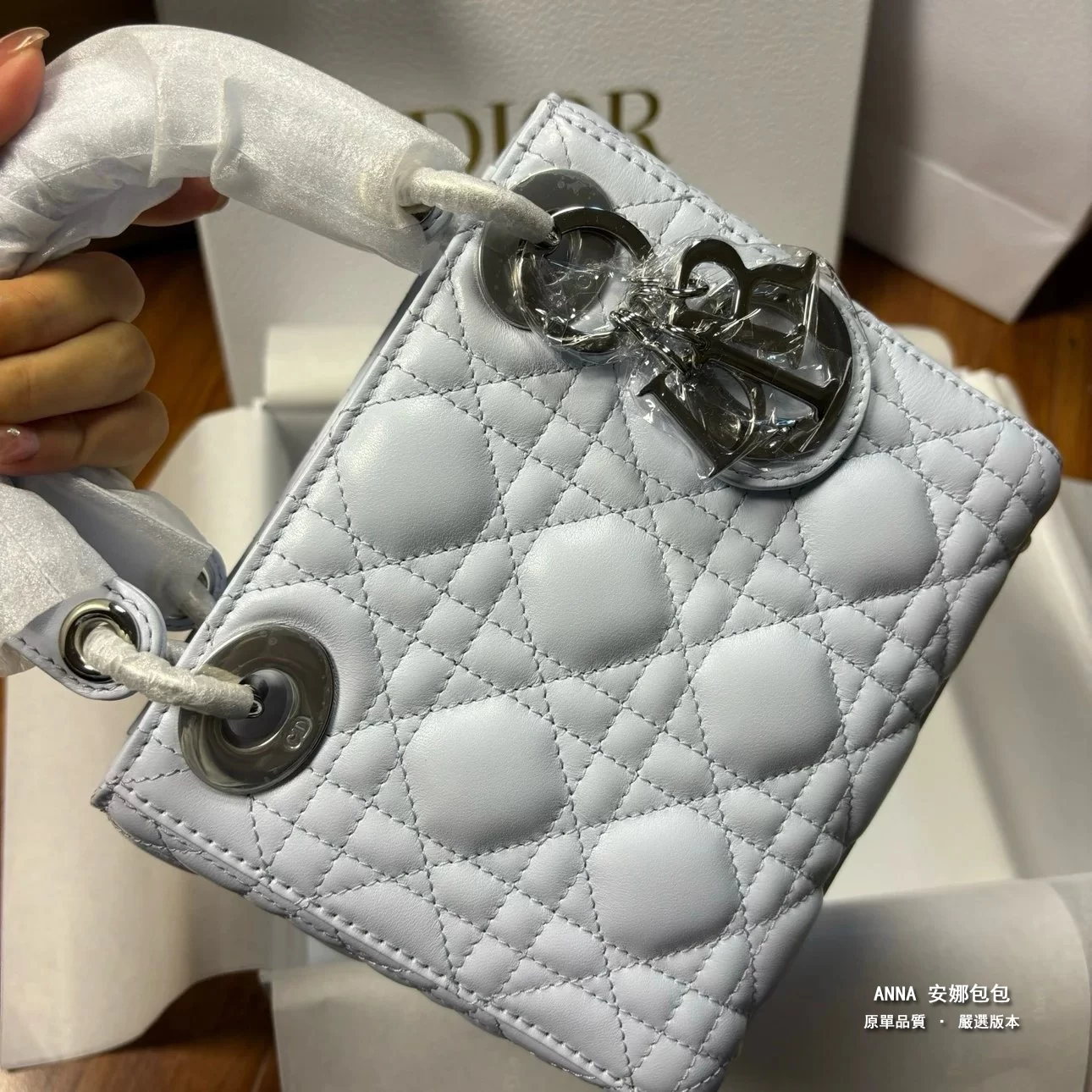 【鎮店渠道貨原皮原五金獨家zp編碼➕跳碼芯片】迪奧Dior2025限定色冰川藍羊皮三格迷你戴妃包單肩包斜挎包手提包時尚高端大牌包包潮流女包越南尾貨