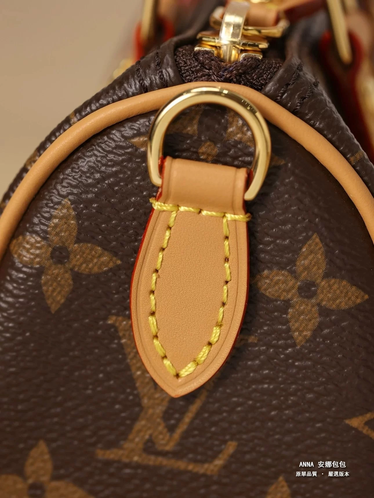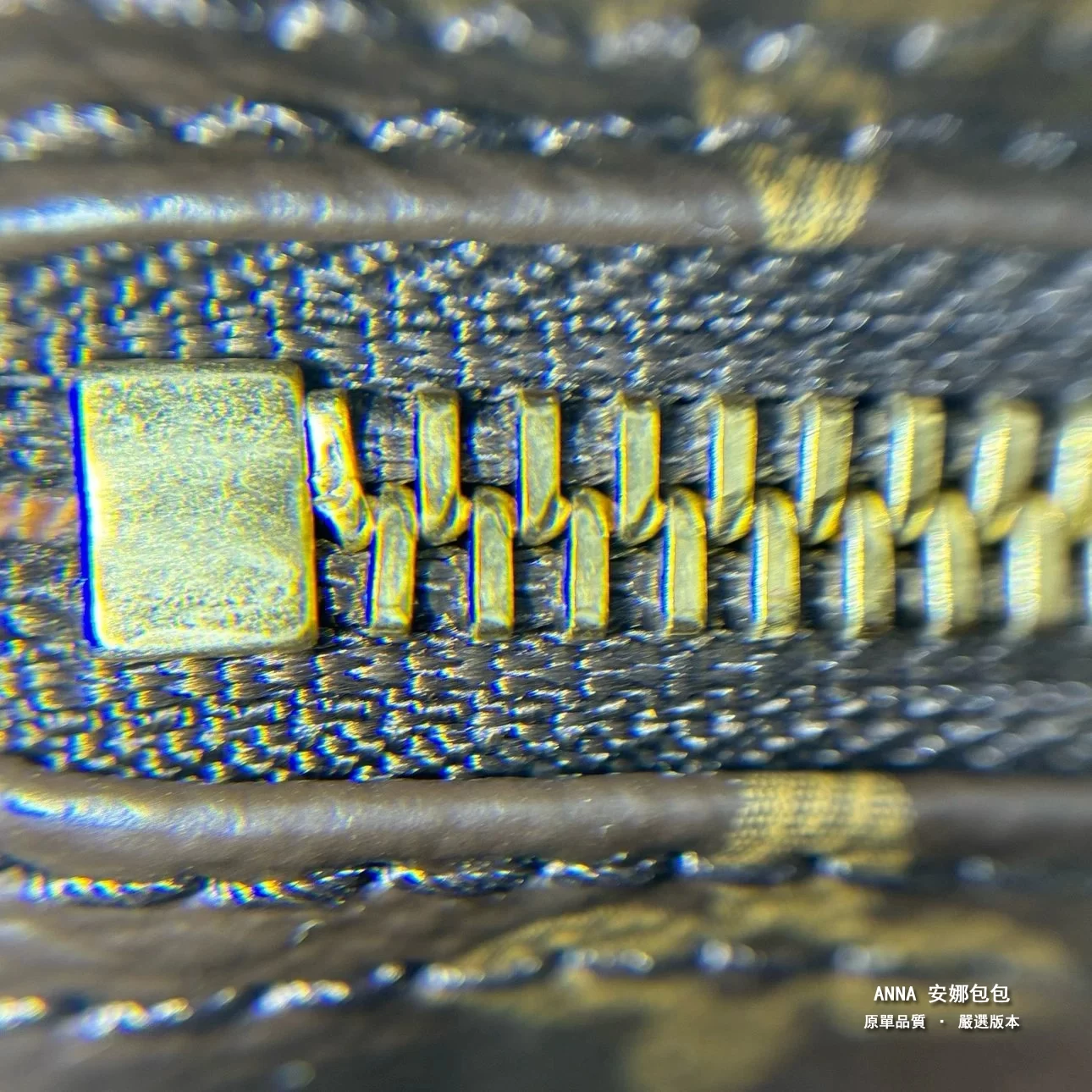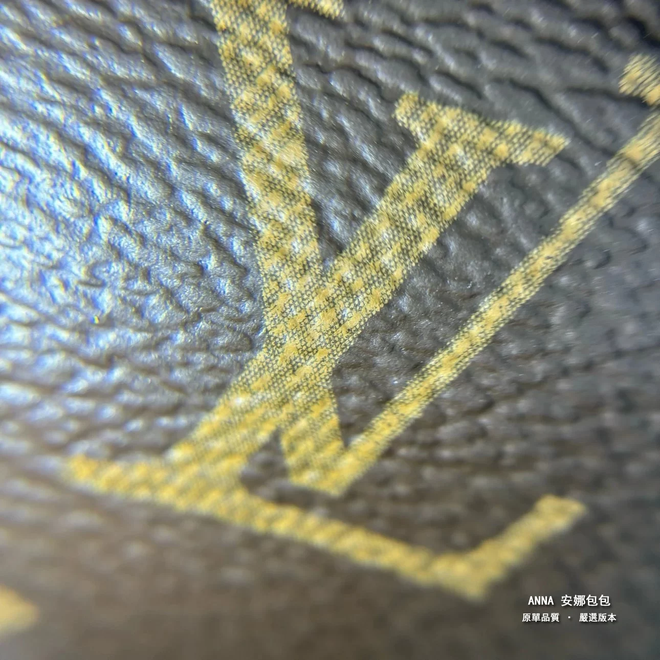 皮料、走線細節鑑定點放大實拍,老花顆粒感十足,色澤油亮,正品質感十足,不是市場那種假亮的皮質,面料越用越亮