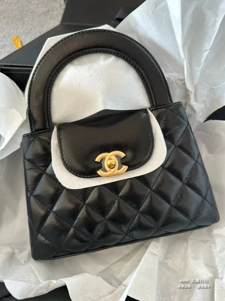 香奈兒 Kelly Nano 菱格油蠟亮面 古金鏈條 渠道原單 19cm
