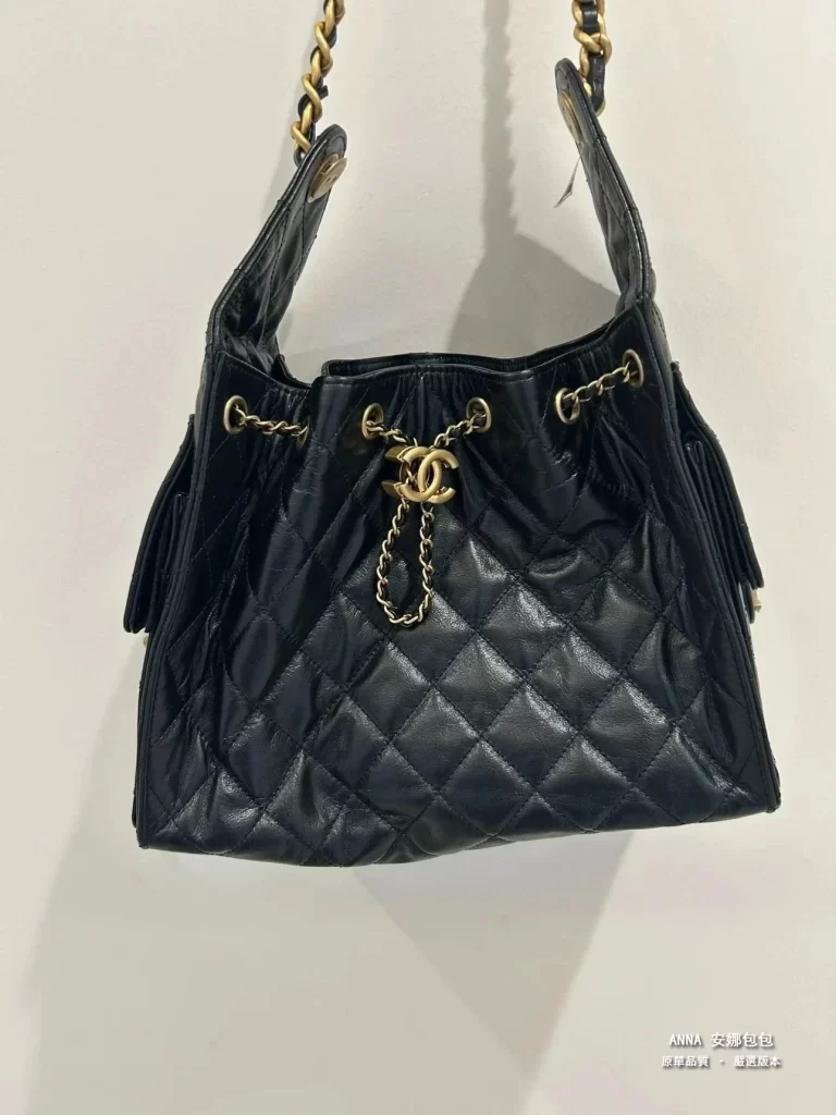 香奈兒 Hobo 腋下包 菱格抽繩鏈條 原皮原五金 原單查碼版 30cm