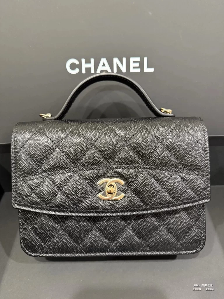 香奈兒 22A Mini CF 口蓋手提包 黑色 淡金鍊 頂級版本
