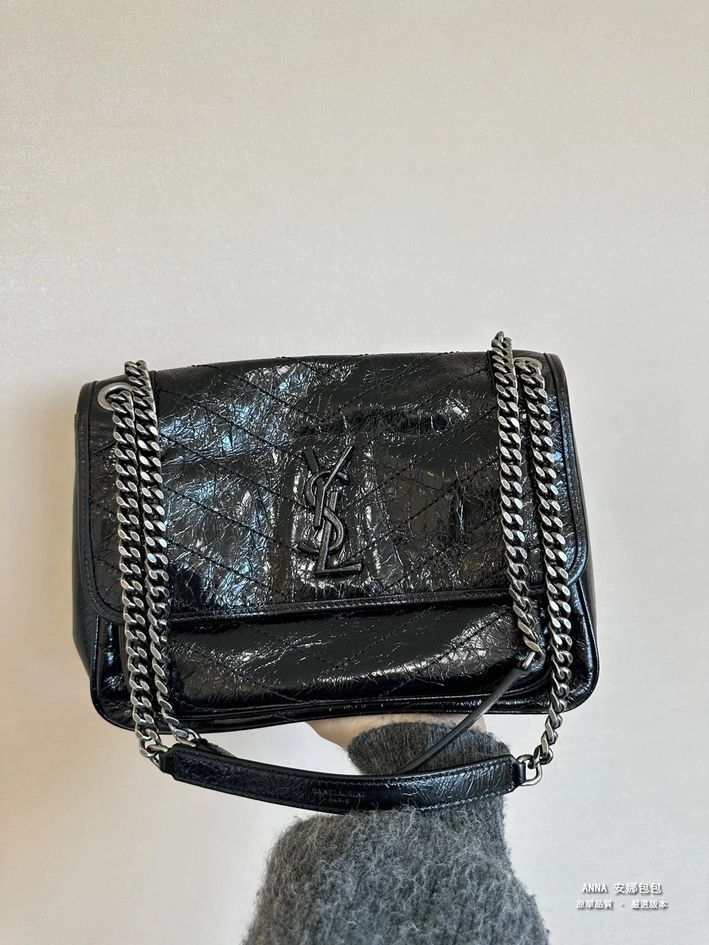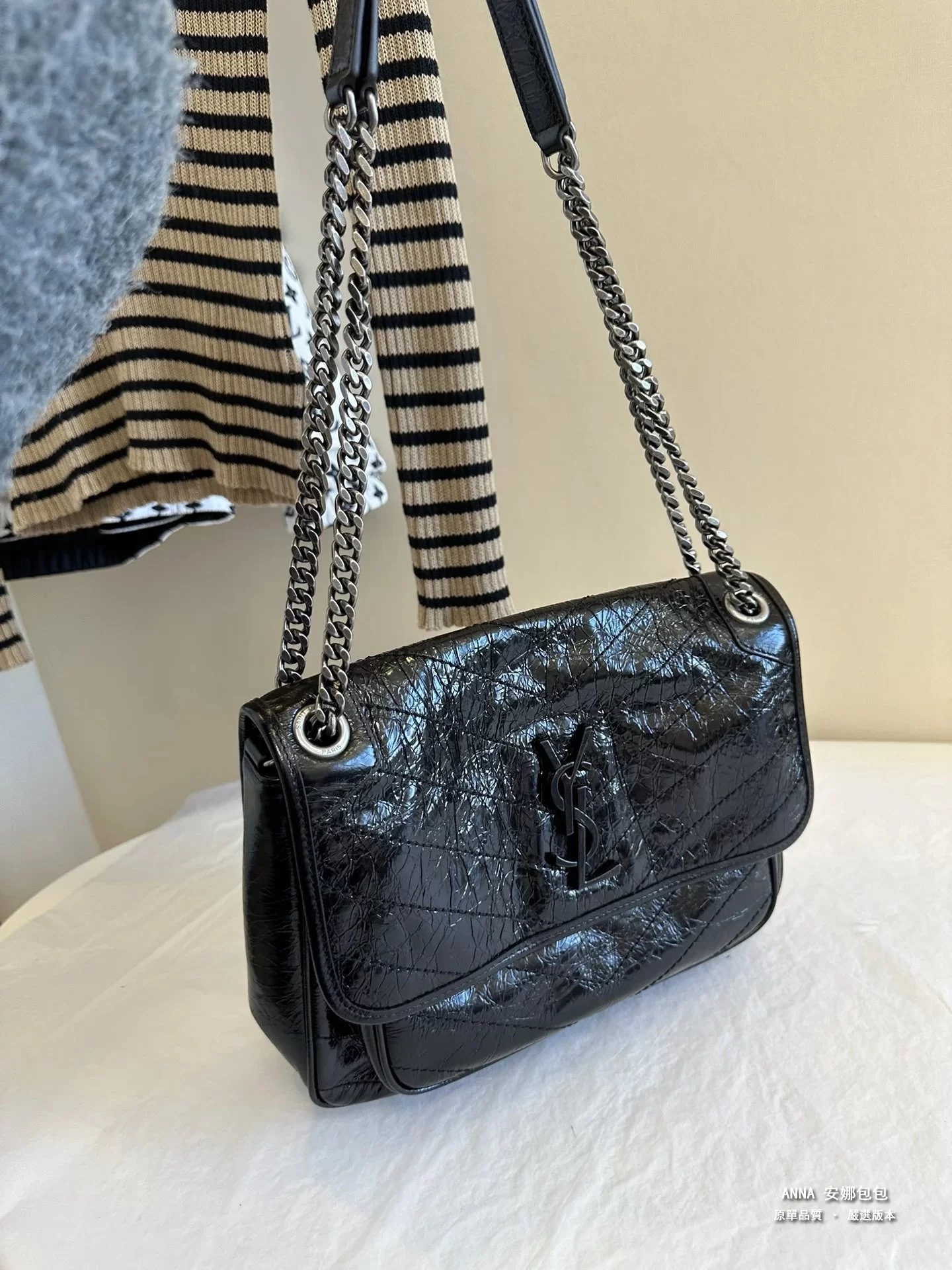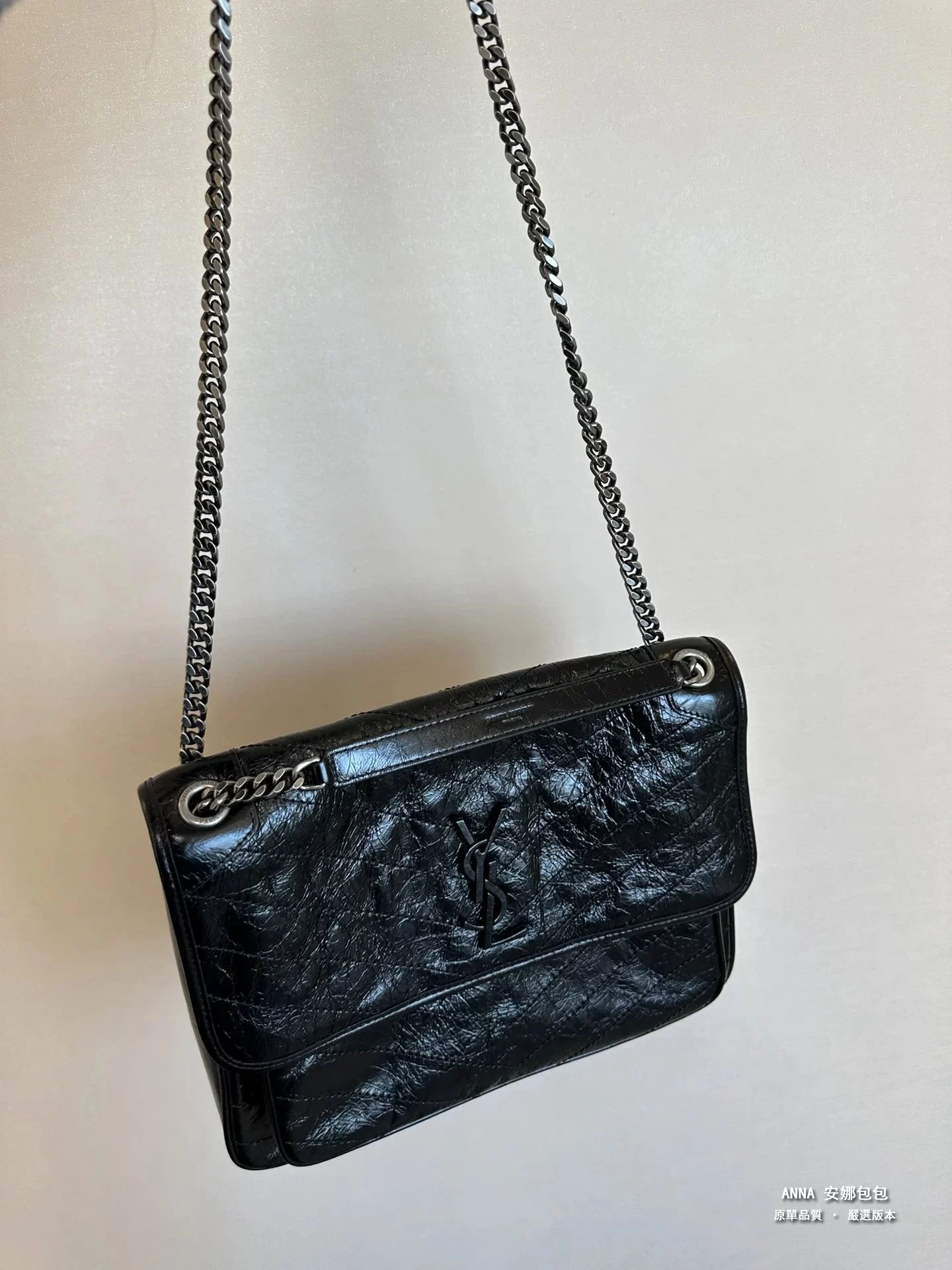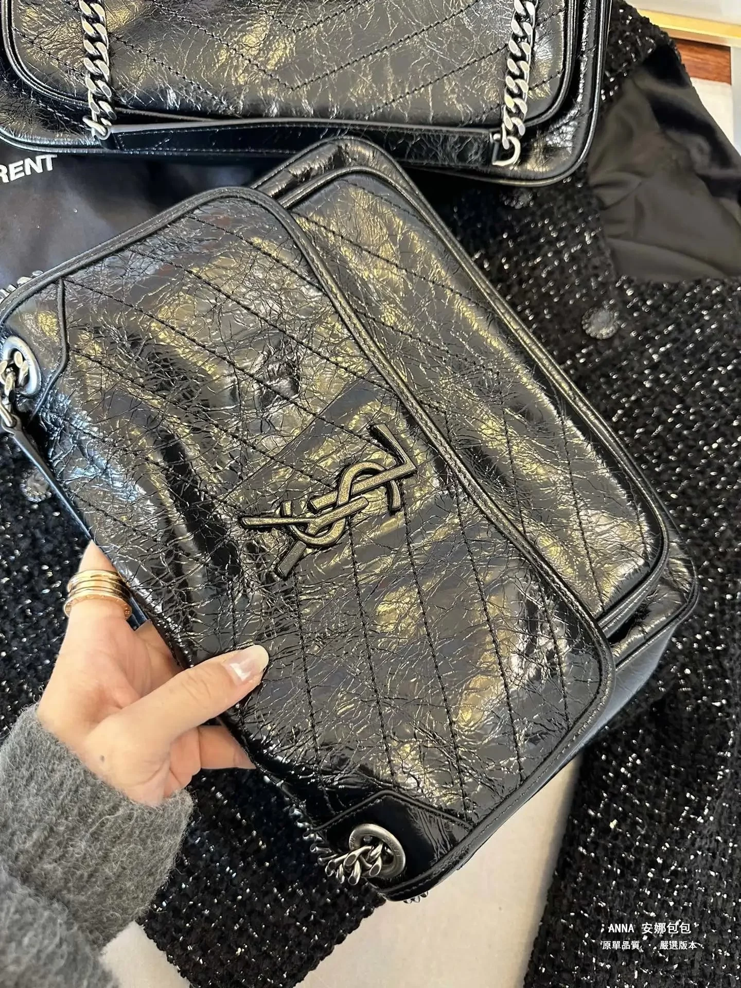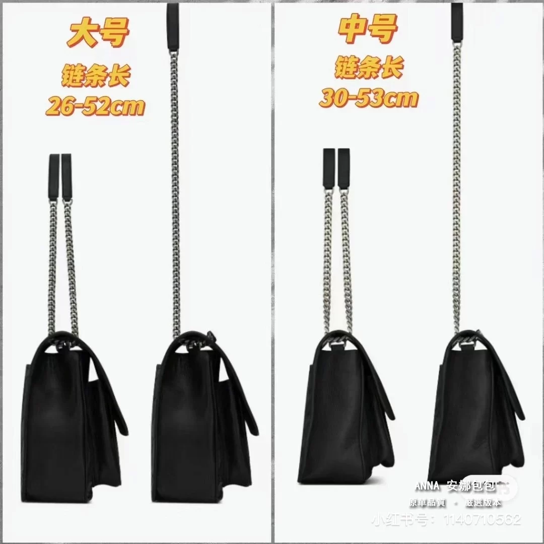 聖羅蘭 Niki 鏈條單肩斜挎包 油蠟牛皮波浪線 原單 大號32cm