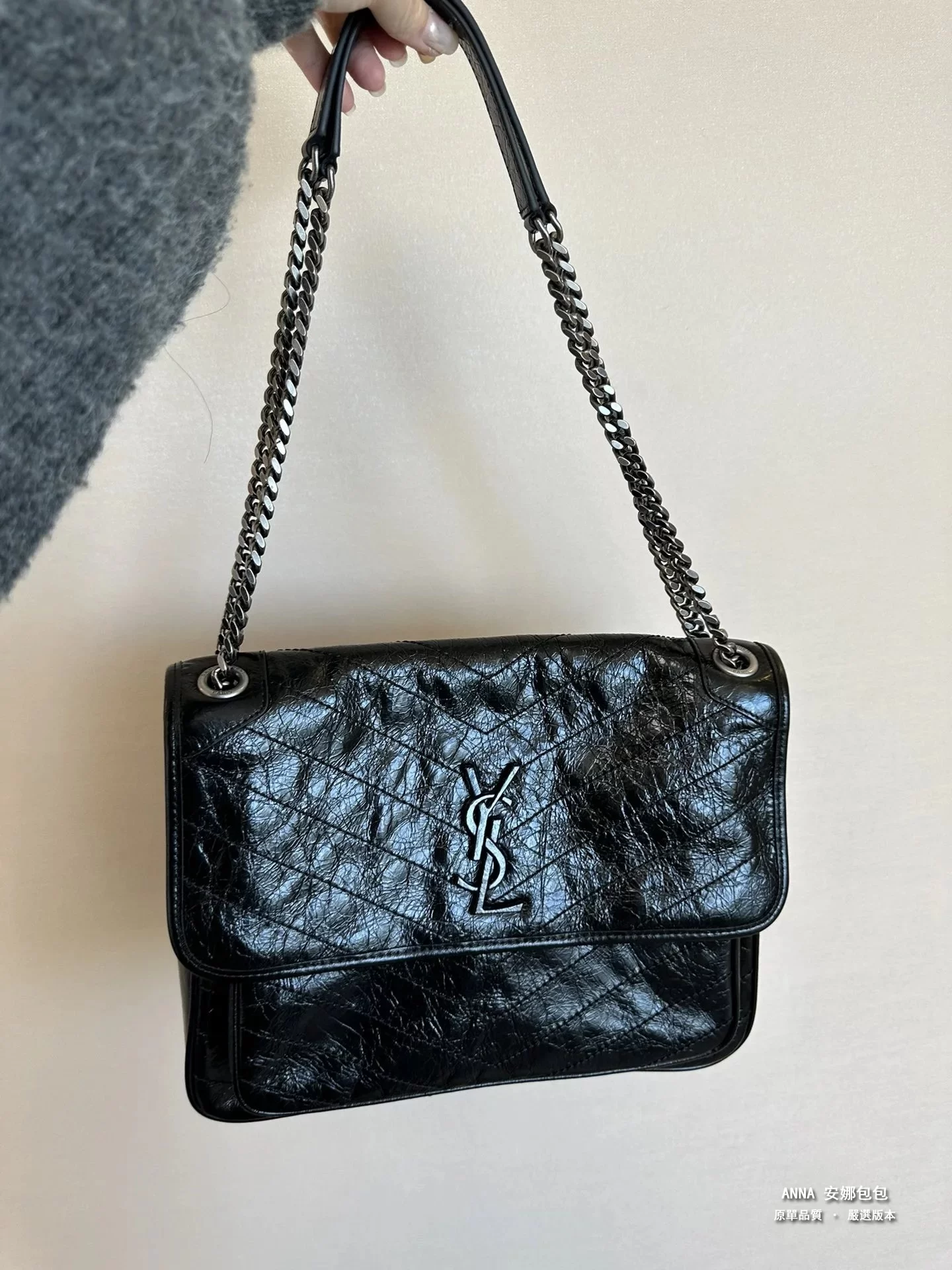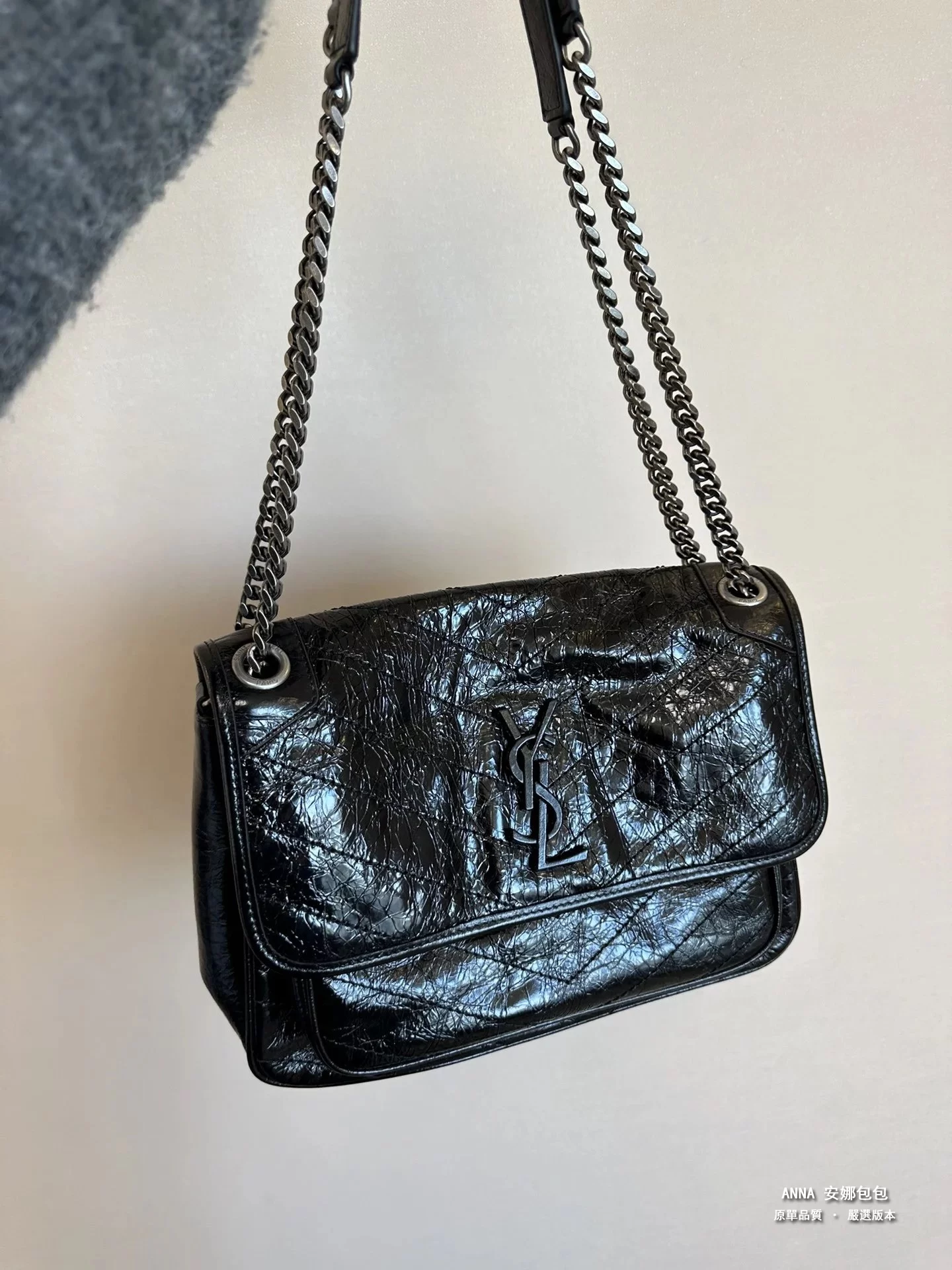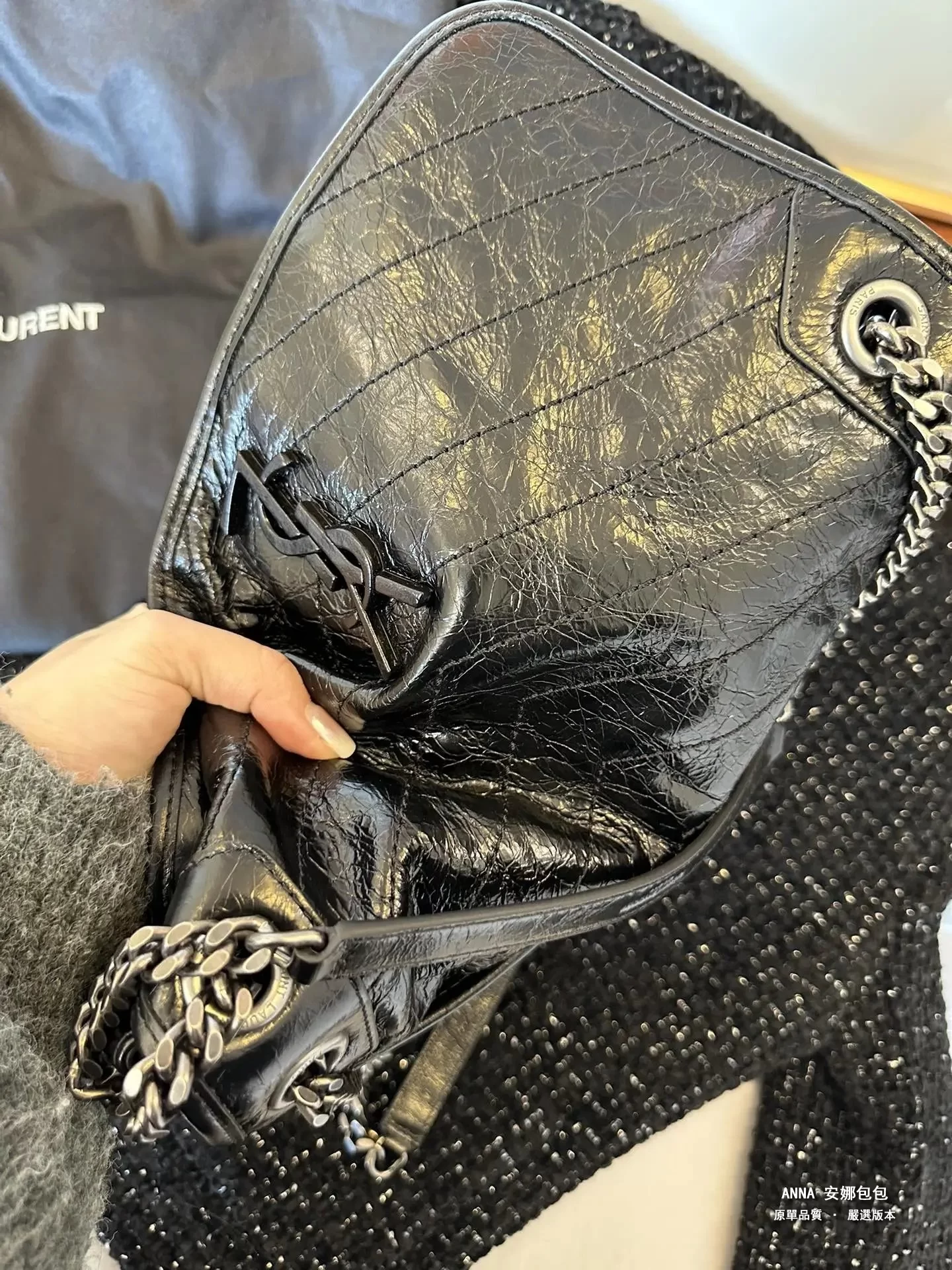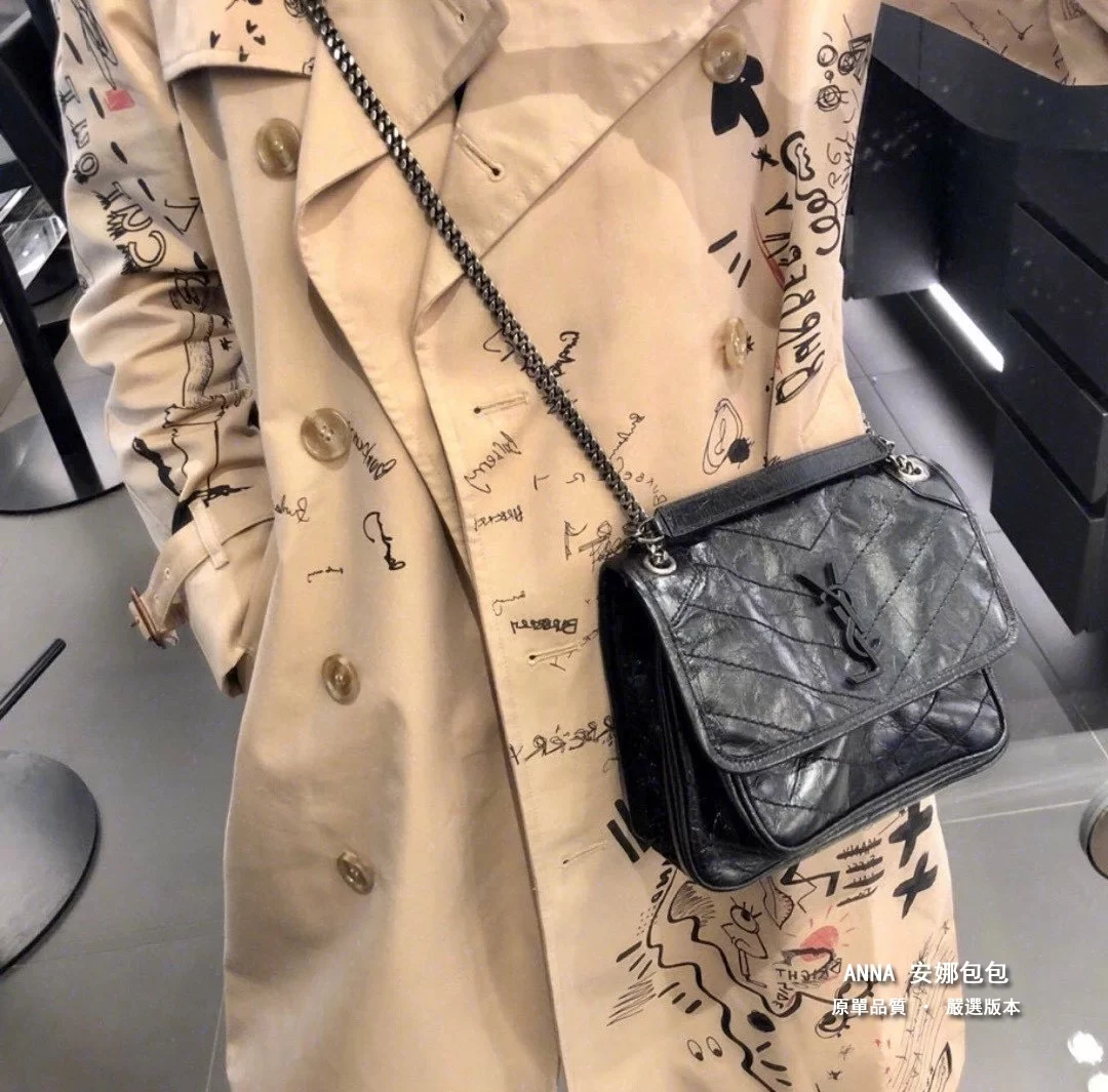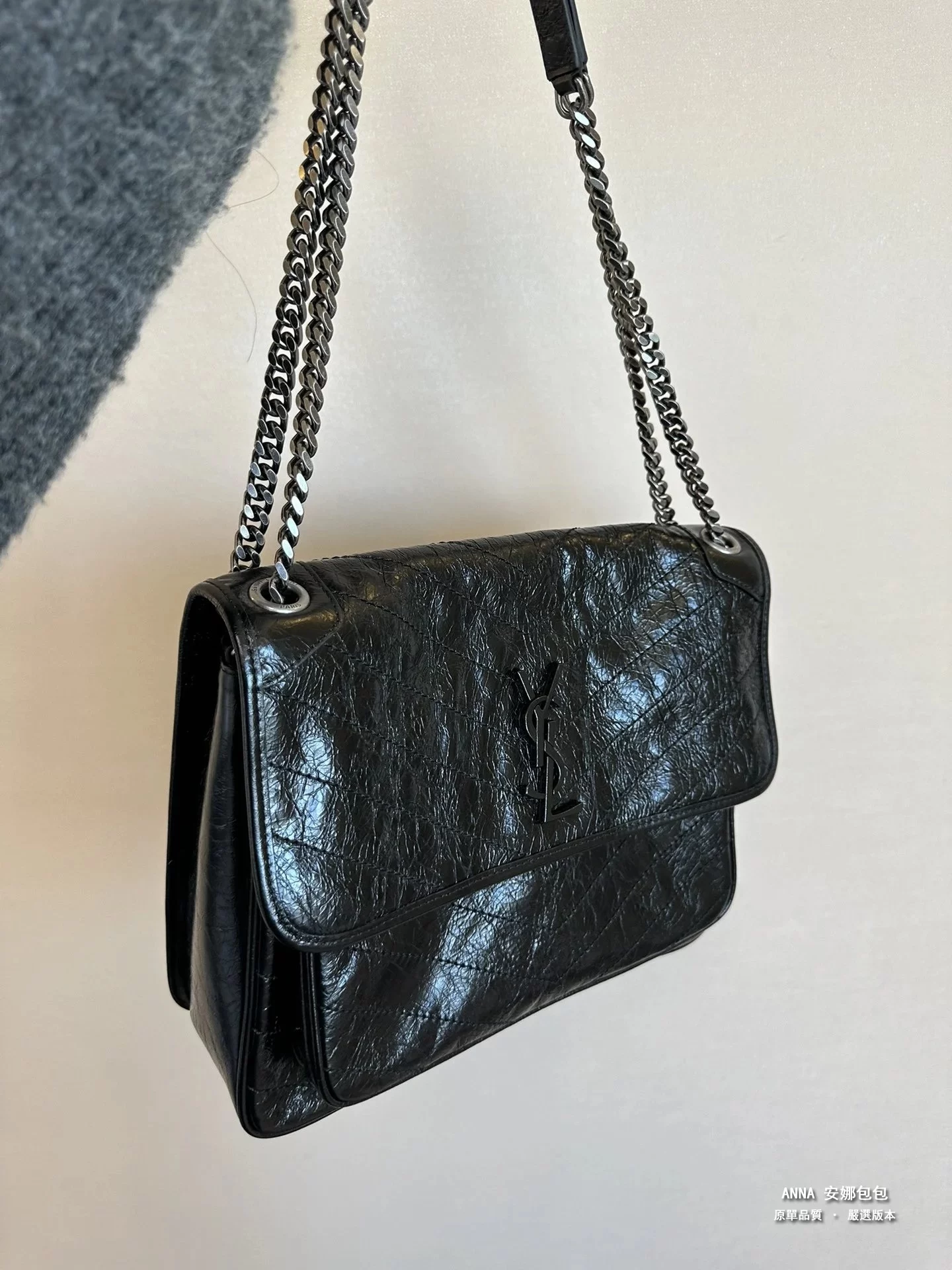 聖羅蘭 Niki 鏈條單肩斜挎包 油蠟牛皮波浪線 原單 大號32cm