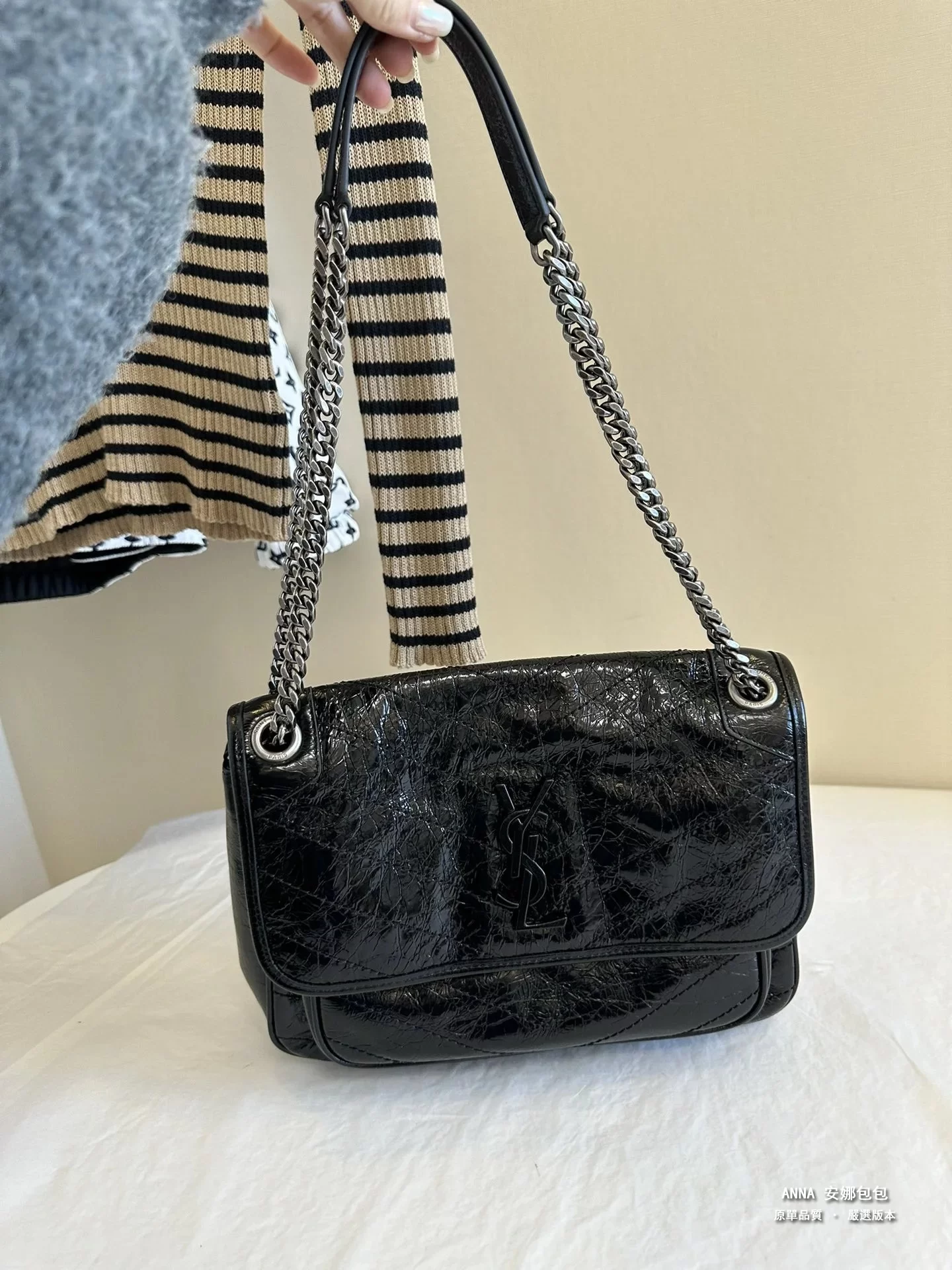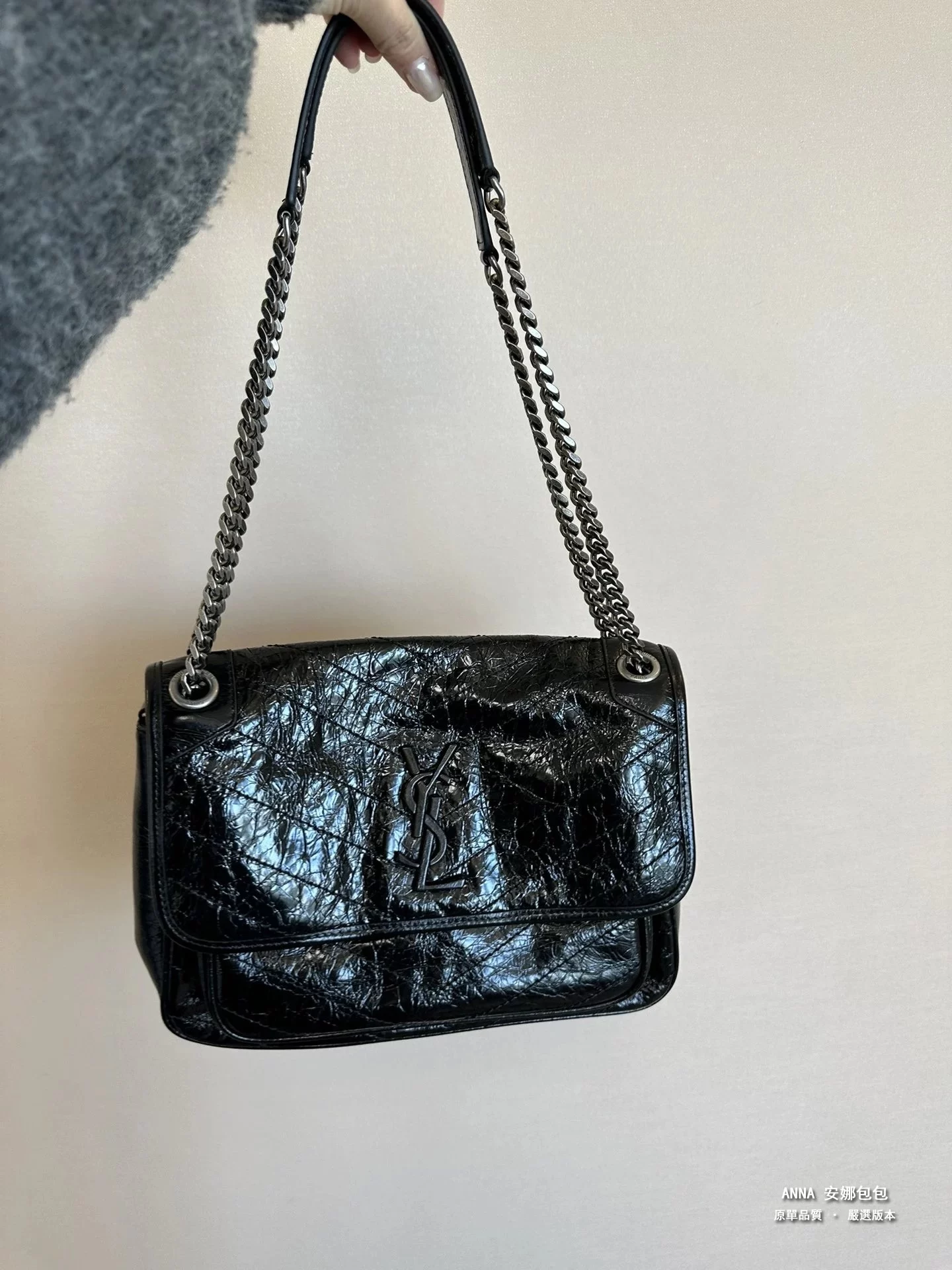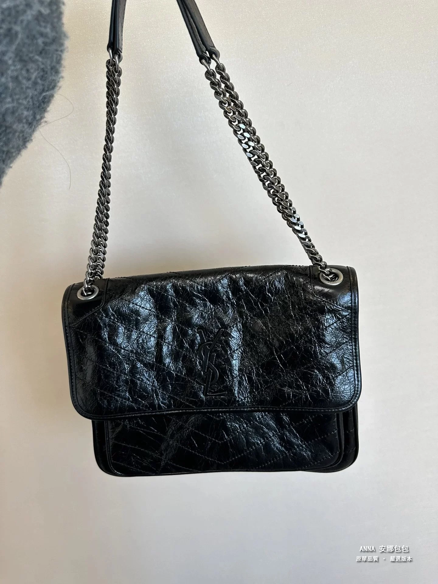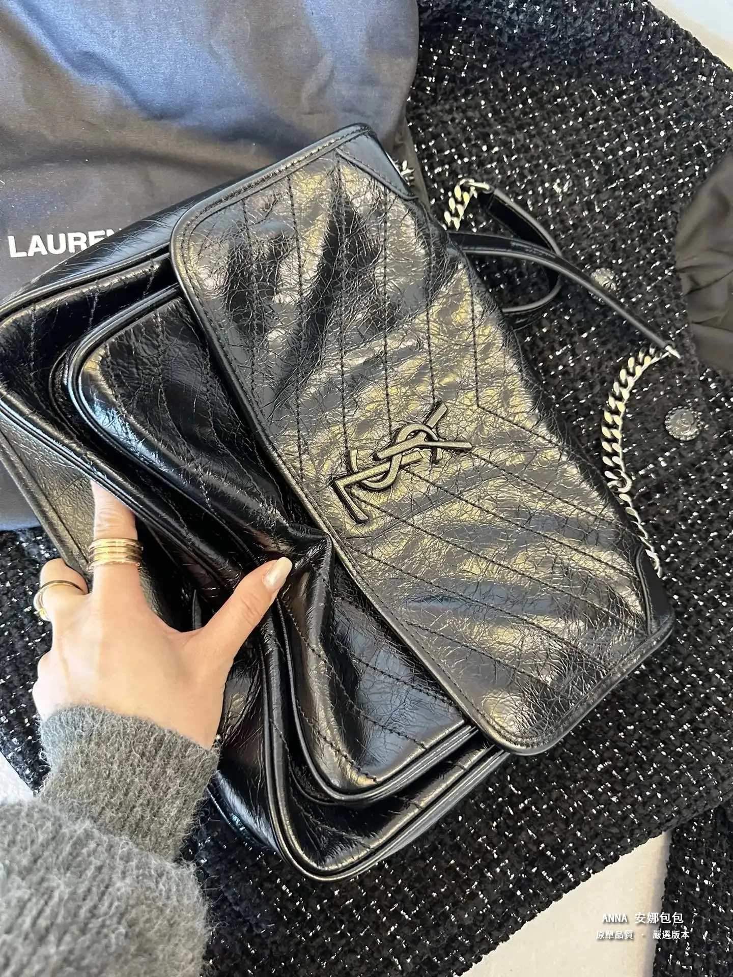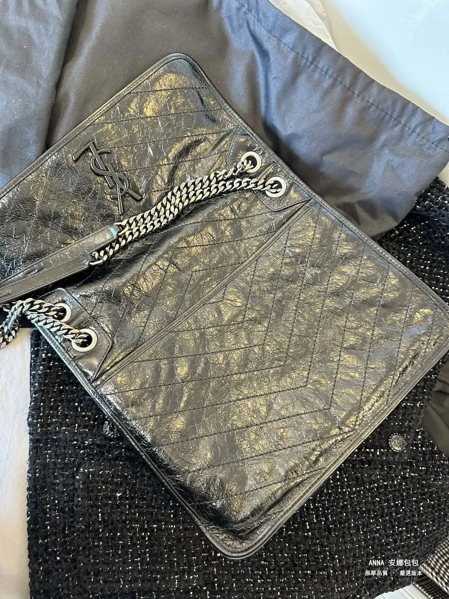 聖羅蘭 Niki 鏈條單肩斜挎包 油蠟牛皮波浪線 原單 大號32cm