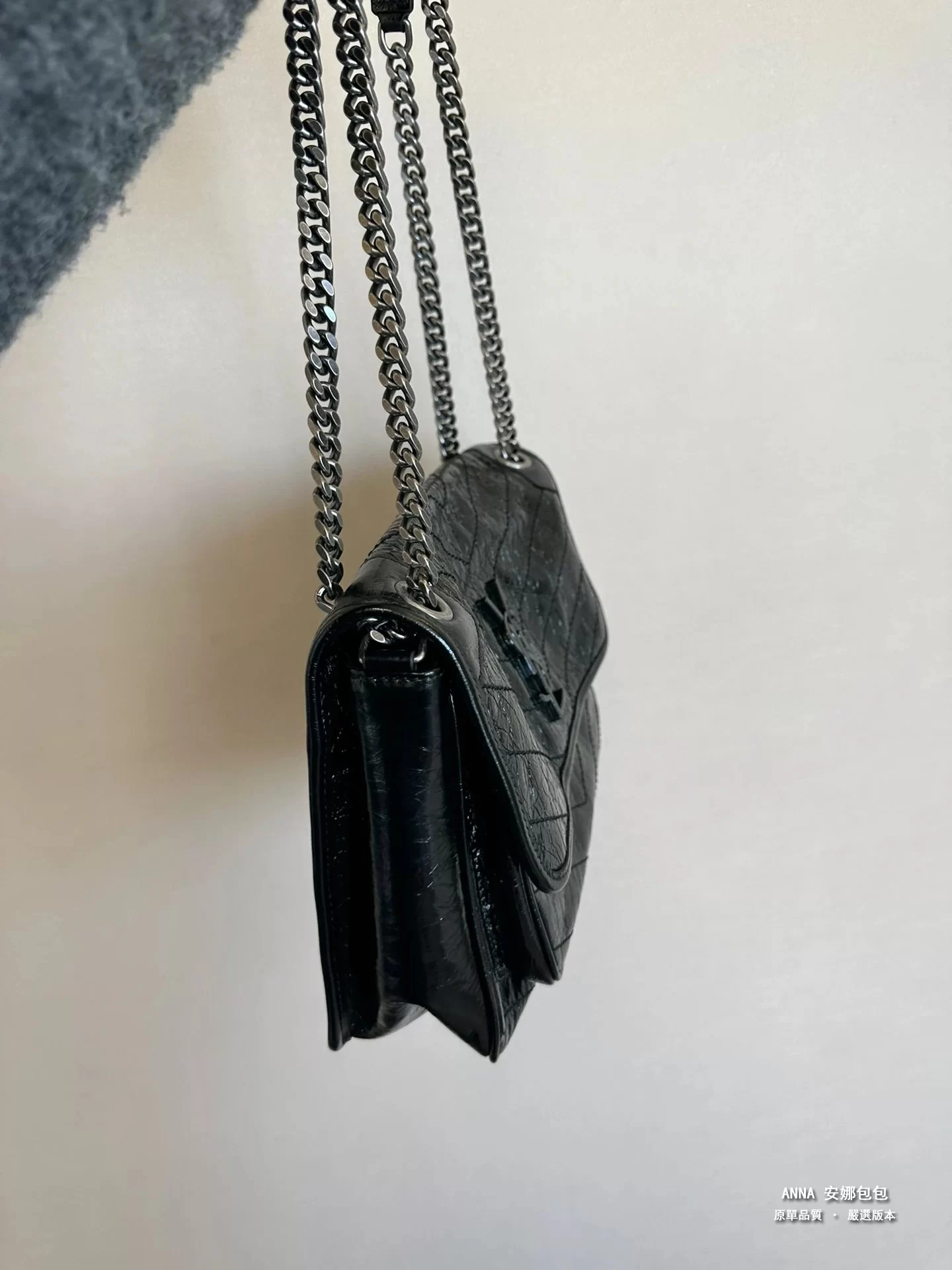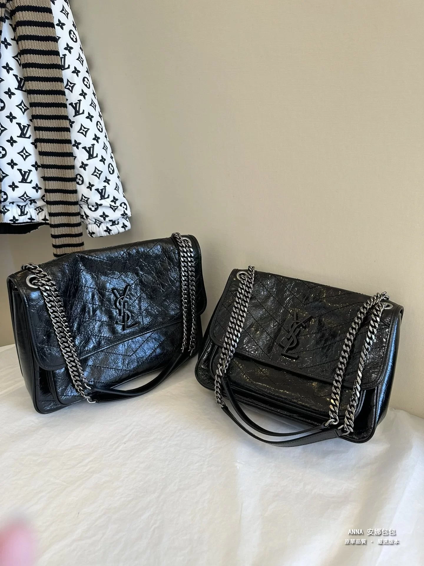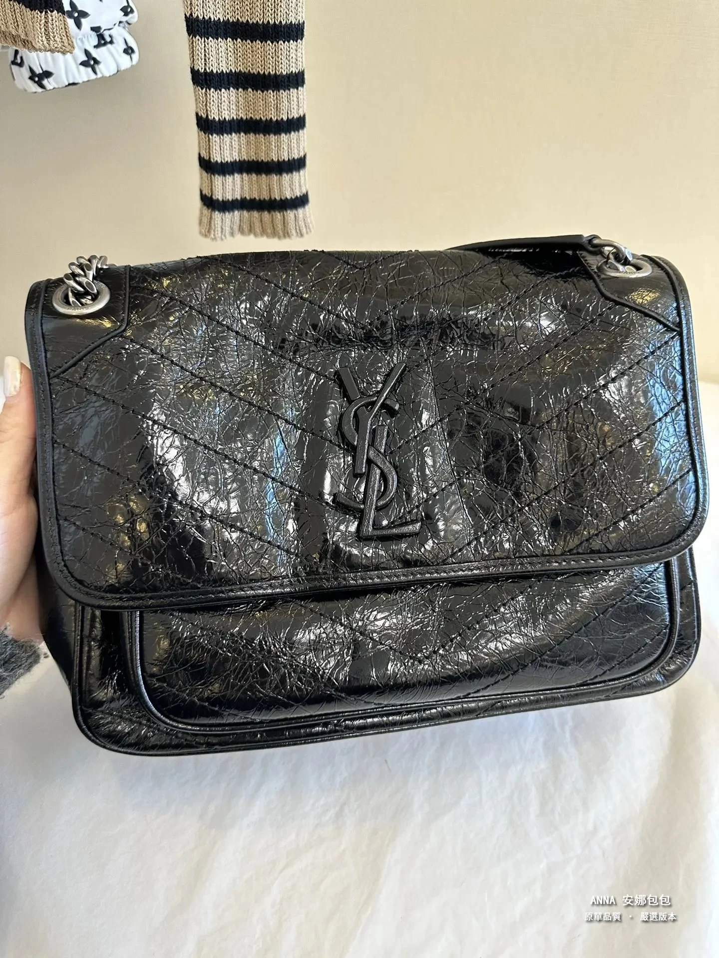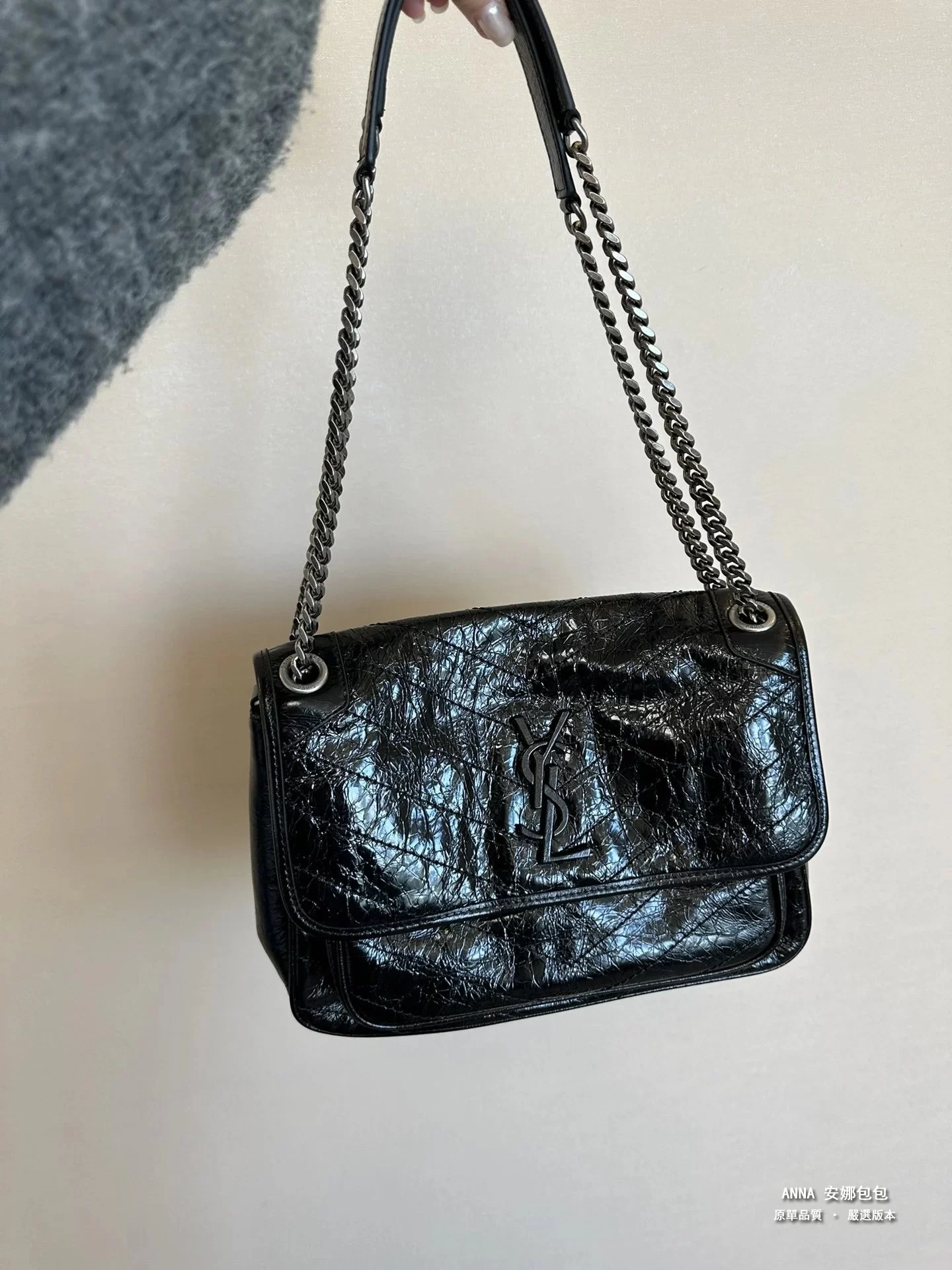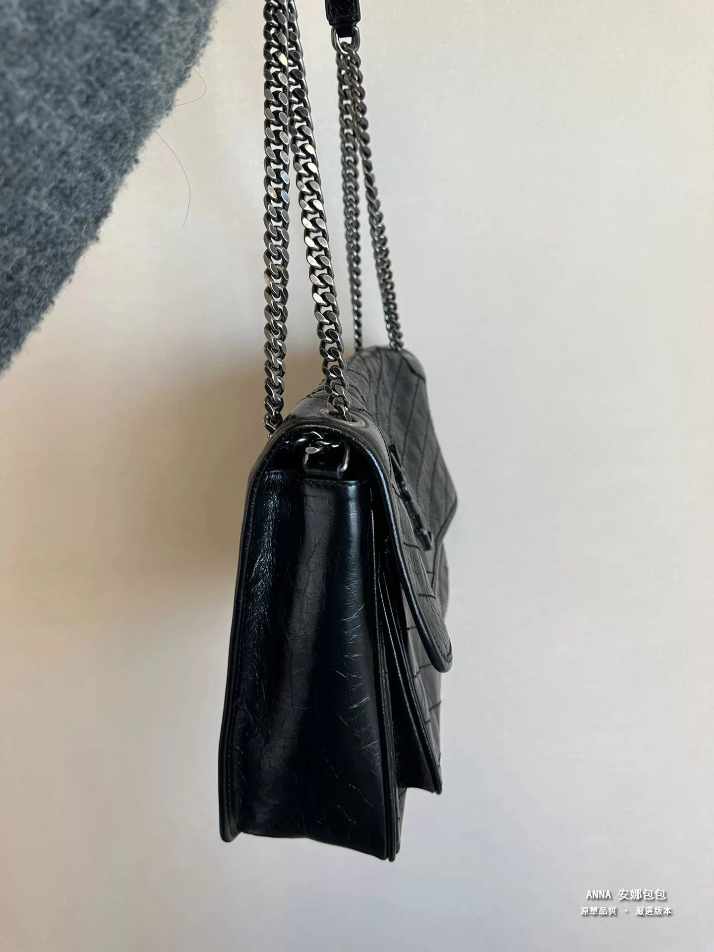 聖羅蘭 Niki 鏈條單肩斜挎包 油蠟牛皮波浪線 原單 大號32cm