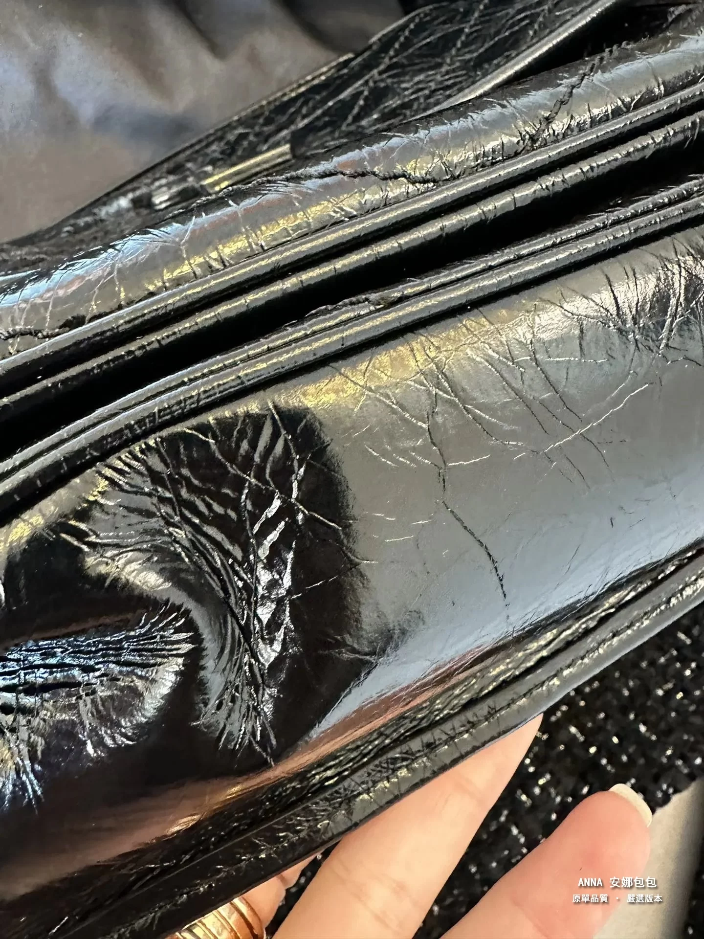 即便是同款 它們的紋路也都是不一樣的;皮料這種紋路需要拿在手上感受,NIKI不是單純的那種爆裂紋,他的紋路很不規則,但很有光澤。同正品櫃使用的是摔紋牛皮,指牛皮自然生長的紋路,沒有經過機械壓紋的自然紋路,紋路呈現粗淺不一,這更能顯示牛皮的精貴。